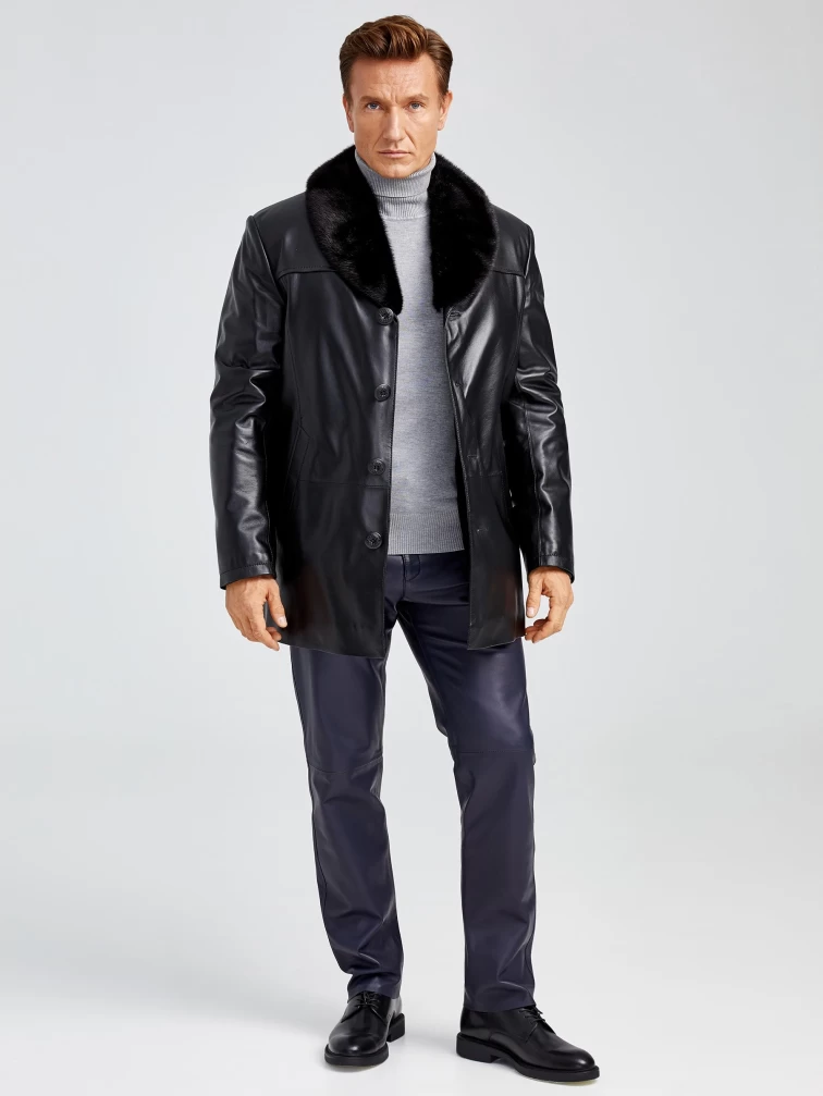 Товар мужская зимняя кожаная куртка с норковым воротником премиум класса 534мех, черная, размер 58, артикул 40401 выполнен из натуральной кожи с застежкой пуговицы. Рассчитан на сезон: осень-зима. Длина изделия 86 см, силуэт прямой.
