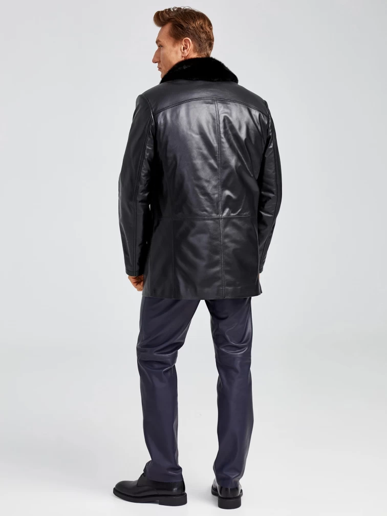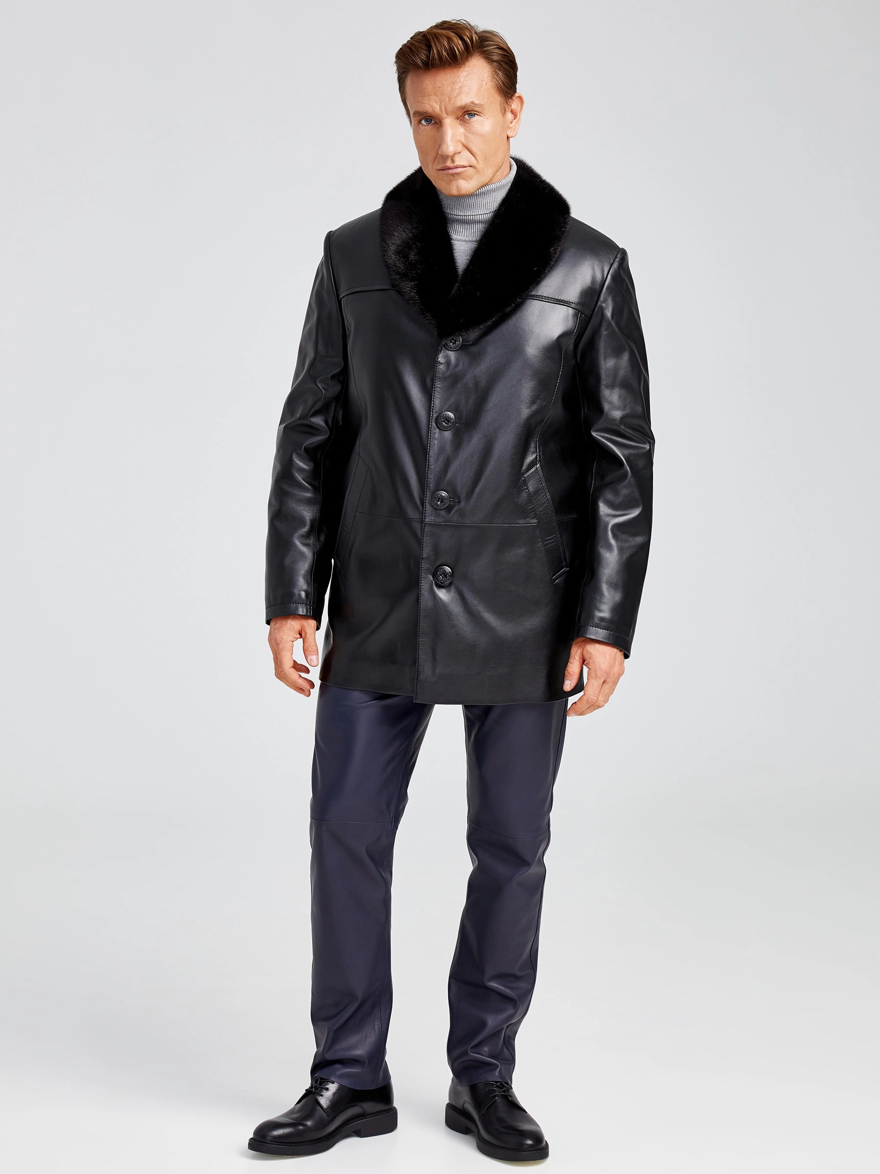 Мужская зимняя кожаная куртка с норковым воротником премиум класса 534мех, черная, размер 58, артикул 40401