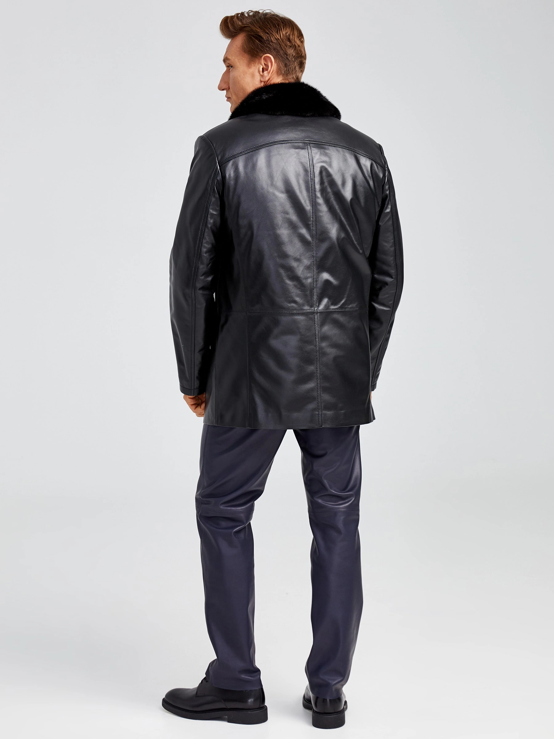Классический дизайн. Кожа высшего качества. Великолепное исполнение. Модель гораздо сложнее, чем кажется на первый взгляд. Съёмный воротник из меха норки. Съёмная подстёжка из тонкорунной овчины. Редкая универсальность для одежды бизнес-класса. Всегда ко времени, независимо от сезона. Прекрасно сочетается как с деловым костюмом, так и с неофициальной одеждой, например, с джинсами.