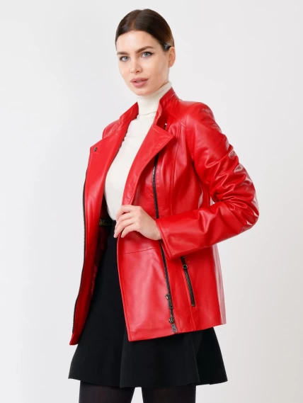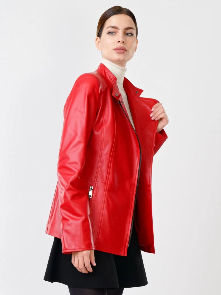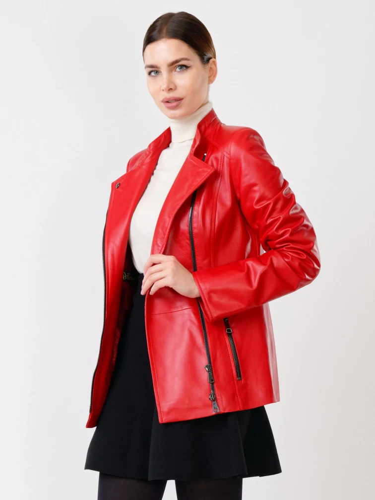 Товар женская кожаная куртка косуха с поясом 320(нв), красная, размер 46, артикул 90731 выполнен из натуральной кожи с застежкой молния. Рассчитан на сезон: весна-лето. Длина изделия 67 см, силуэт полуприлегающий.
