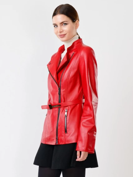 Женская кожаная куртка косуха с поясом 320(нв), красная, размер 46, артикул 90731