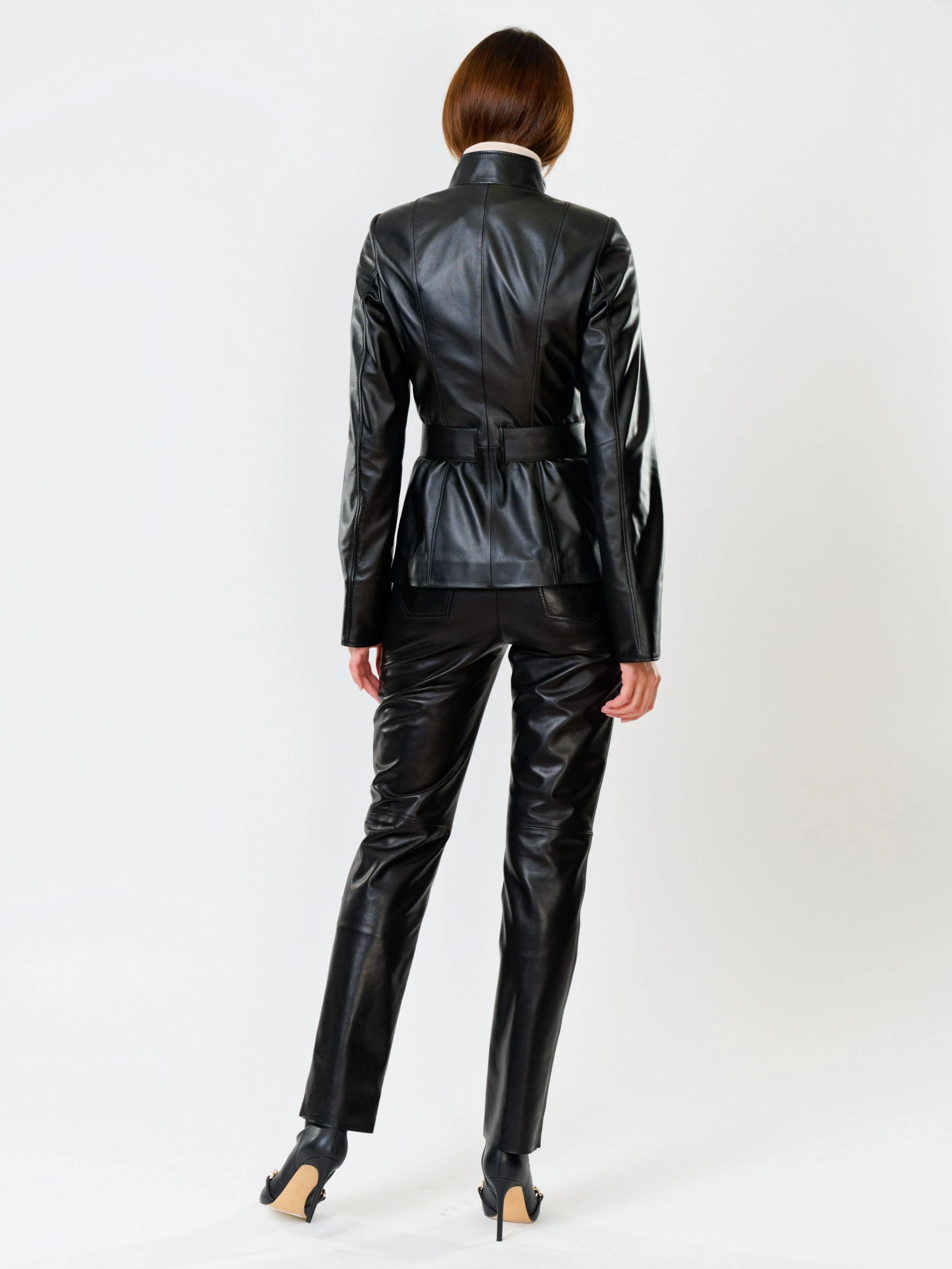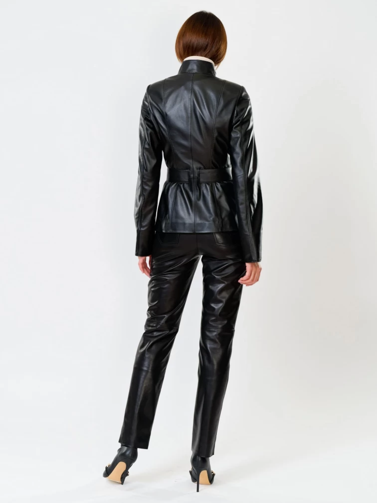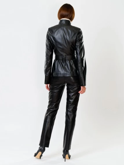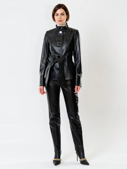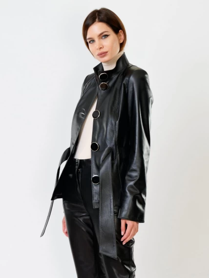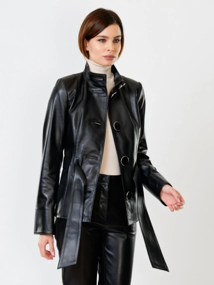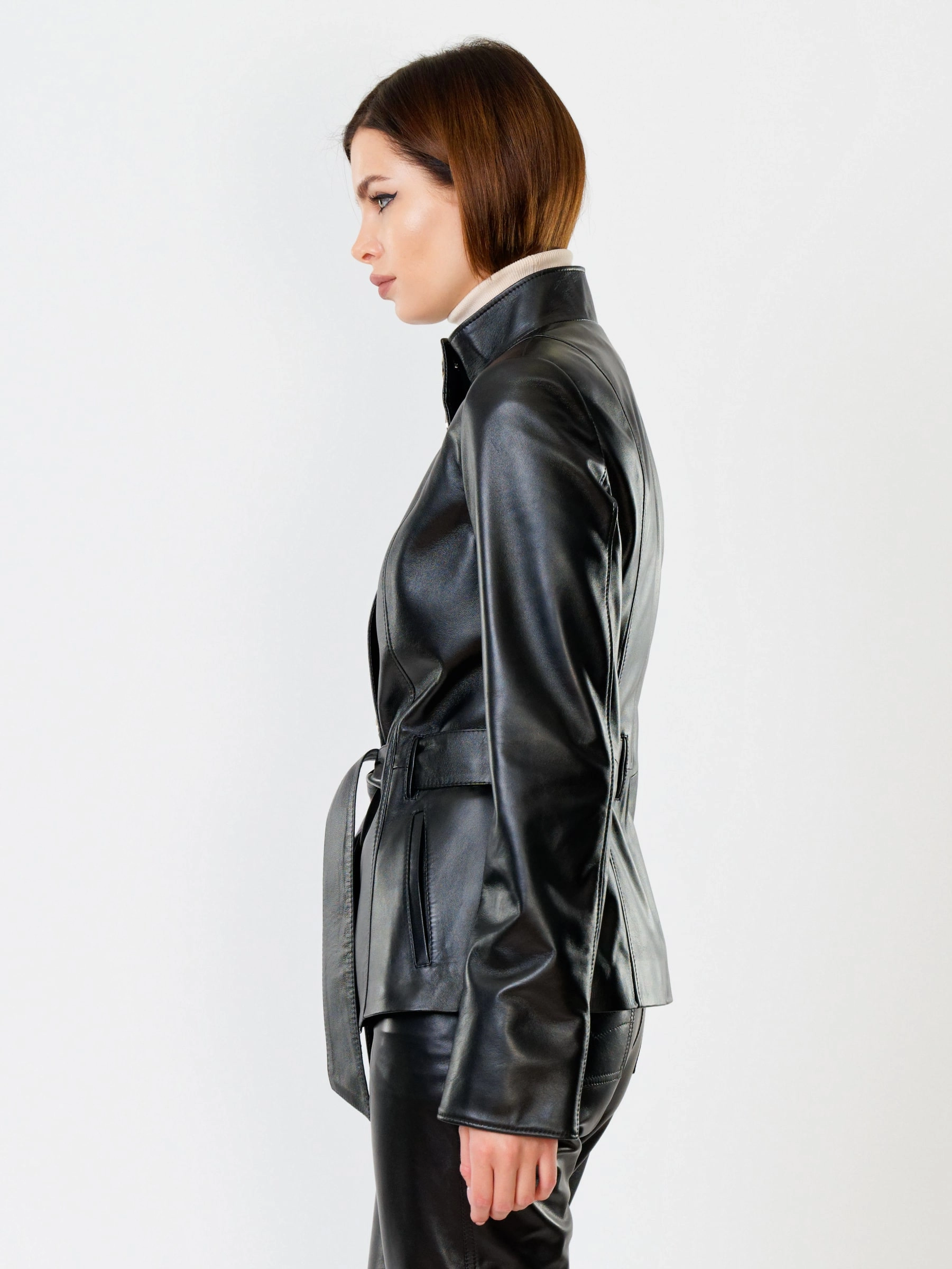 Кожаная женская куртка с поясом 334, черная, размер 40, артикул 91101