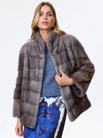 Норковая поперечная куртка женская Ольга(в), графитовая, размер 46, артикул 34030