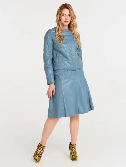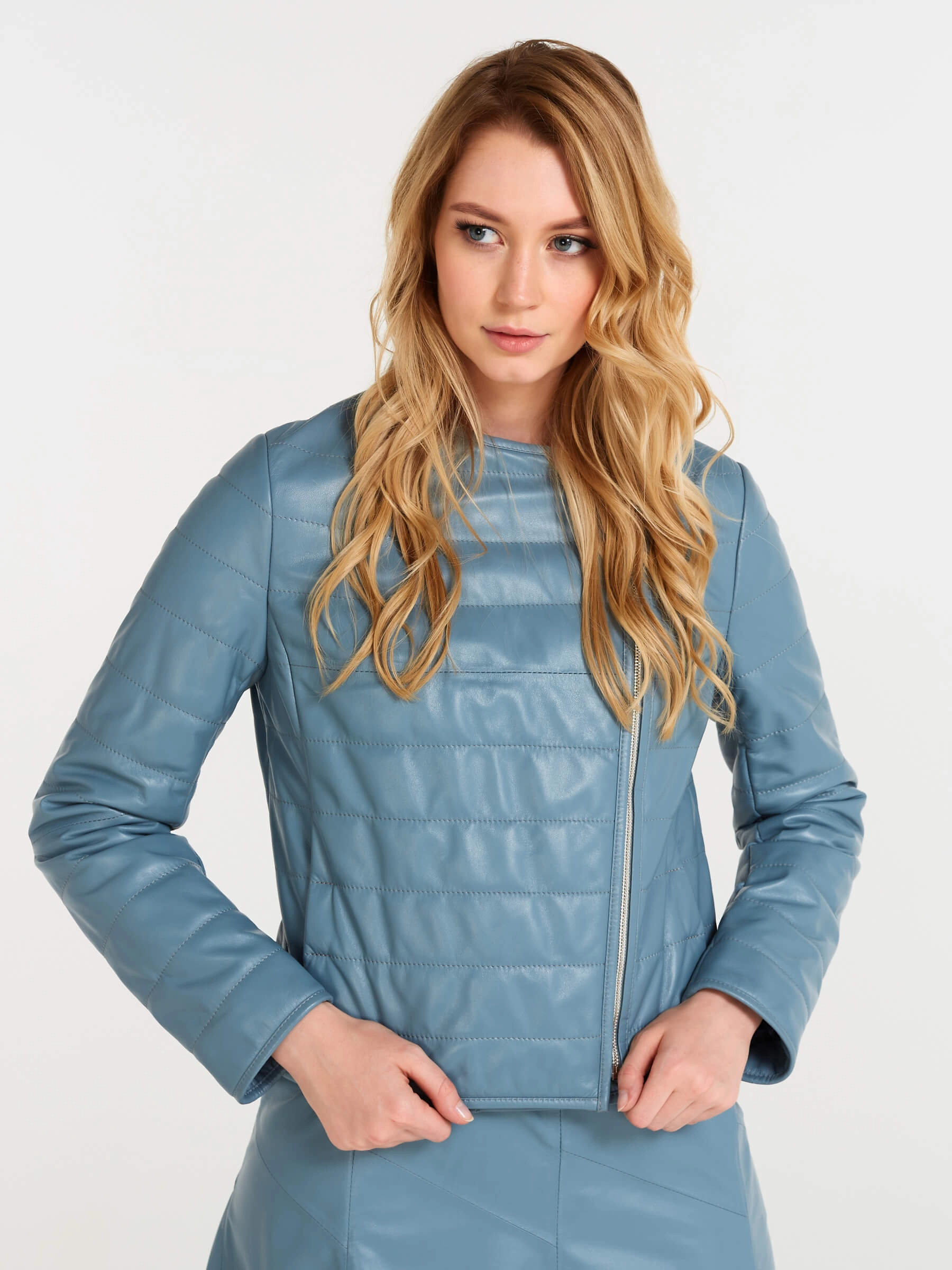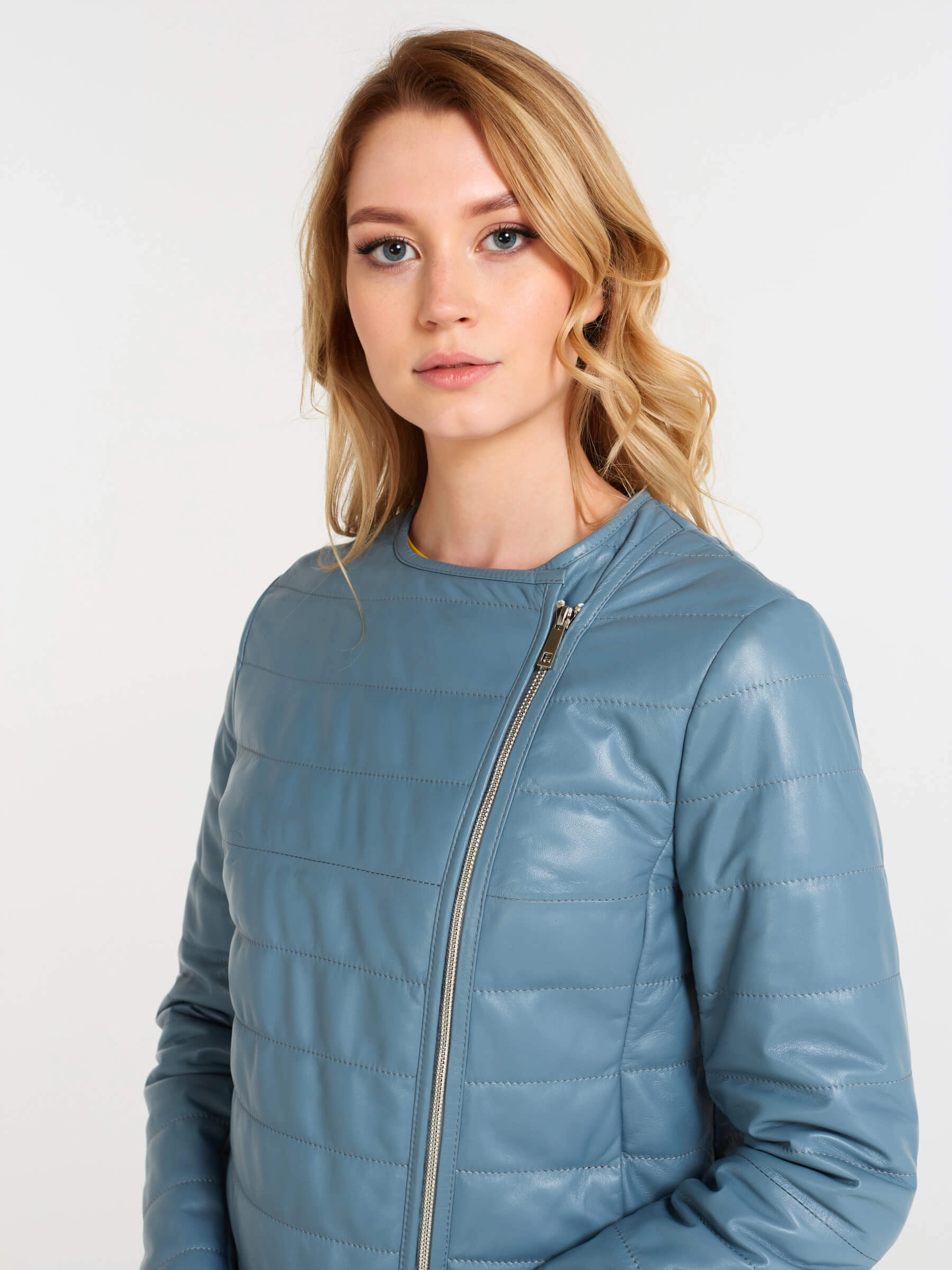 Утепленная кожаная женская косуха без воротника 306, голубая, размер 46, артикул 23610