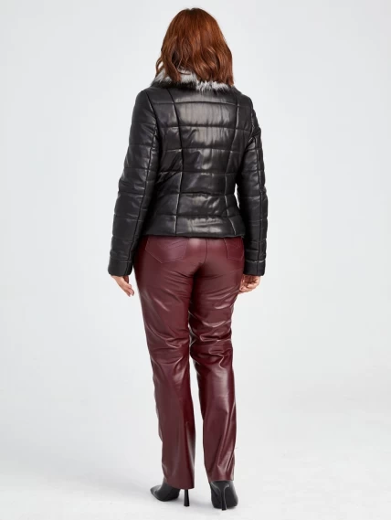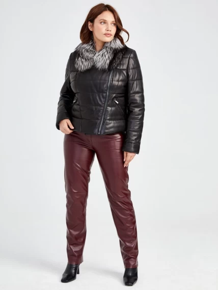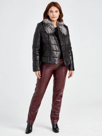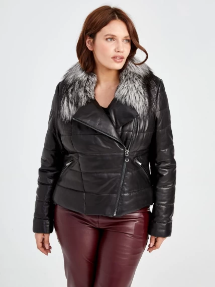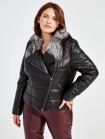 Кожаная утепленная женская косуха с мехом лисицы 706т, черная, размер 42, артикул 23740
