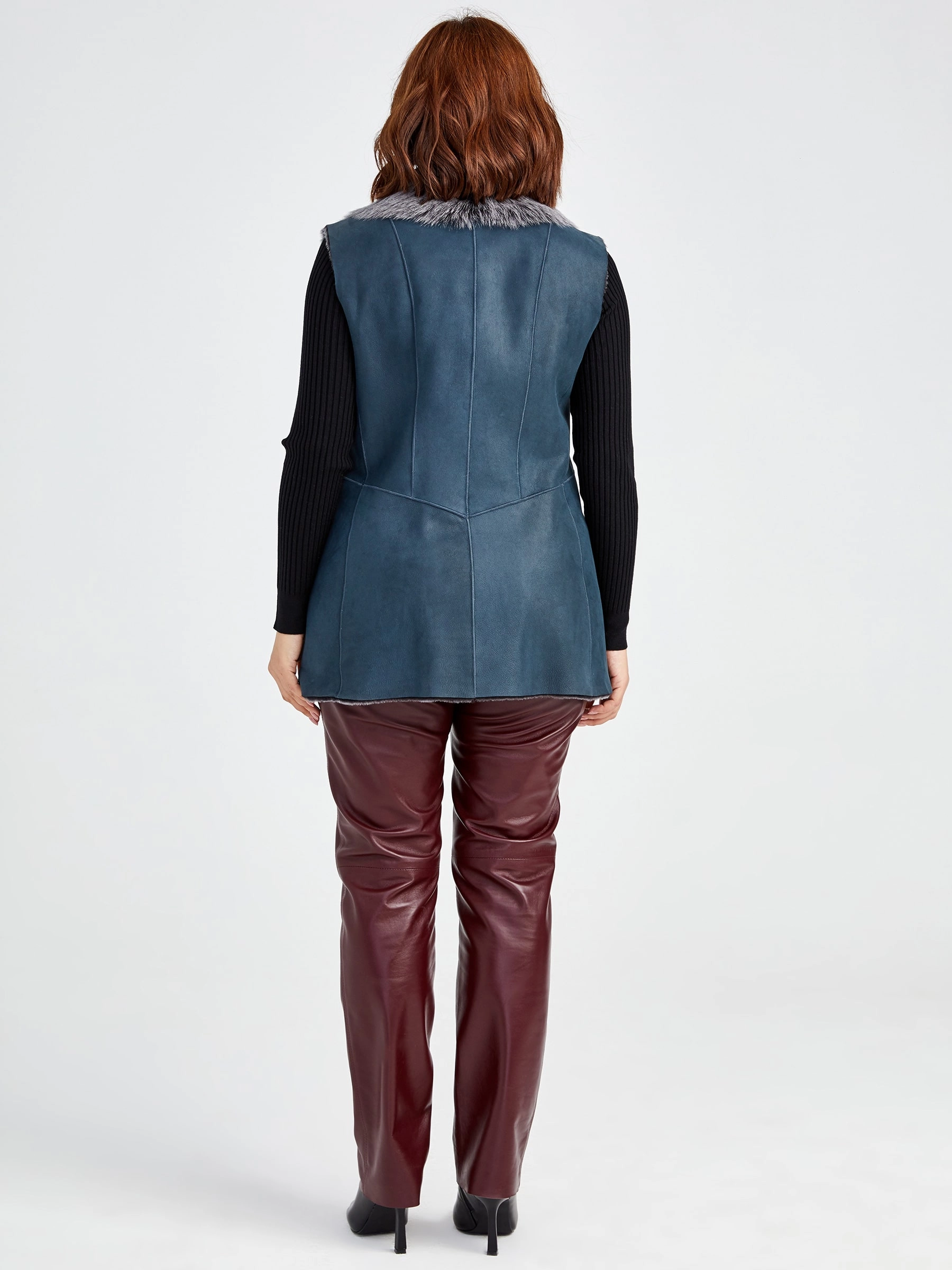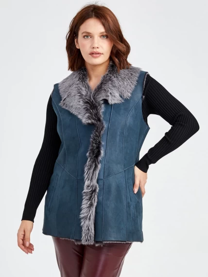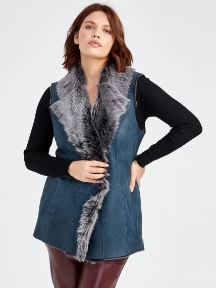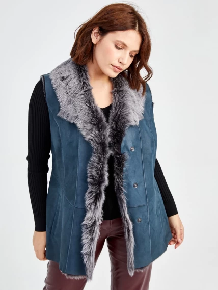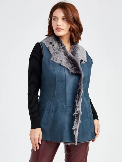 Меховой жилет из тосканы женский 02, синий, размер 52, артикул 62240