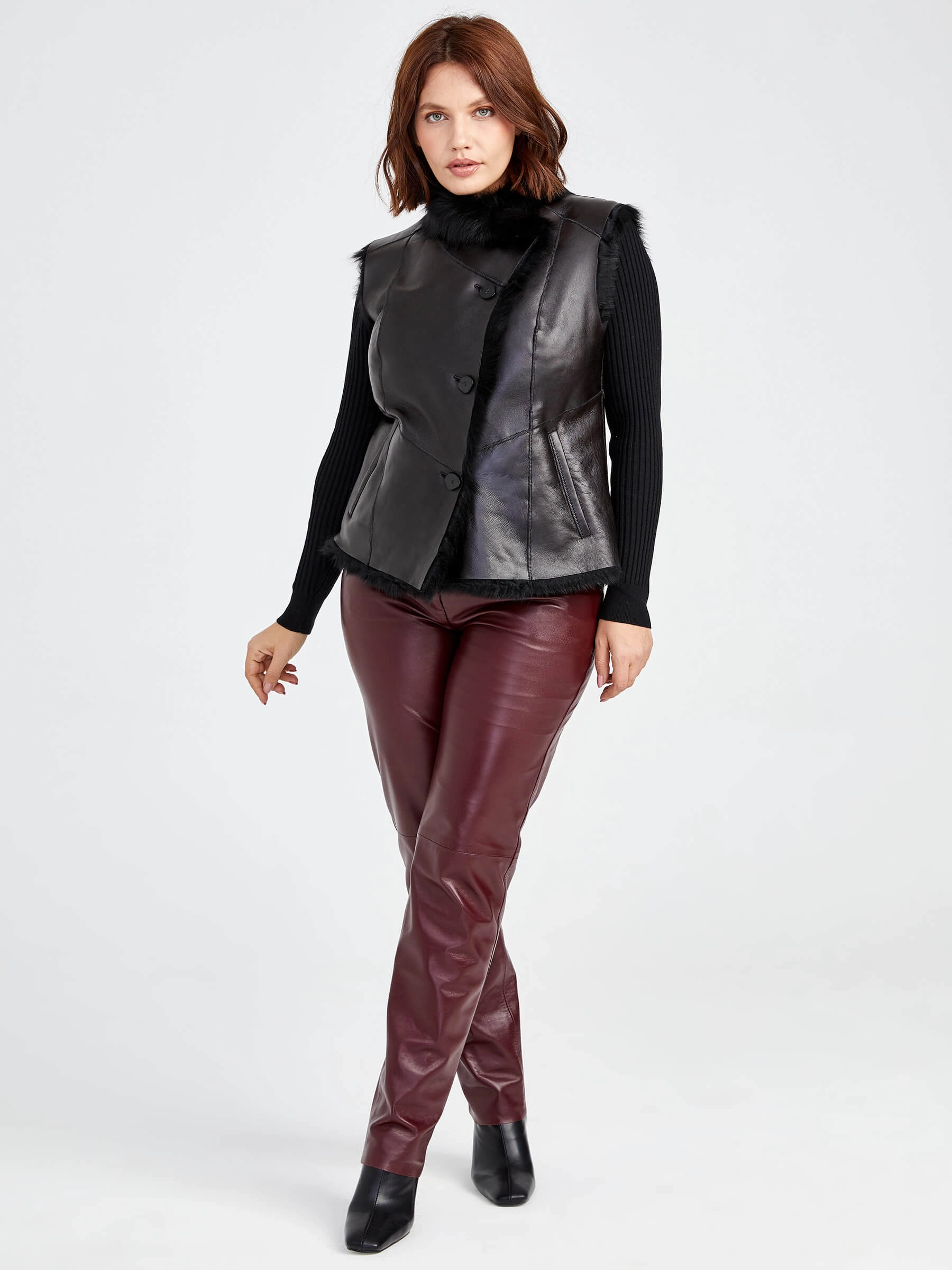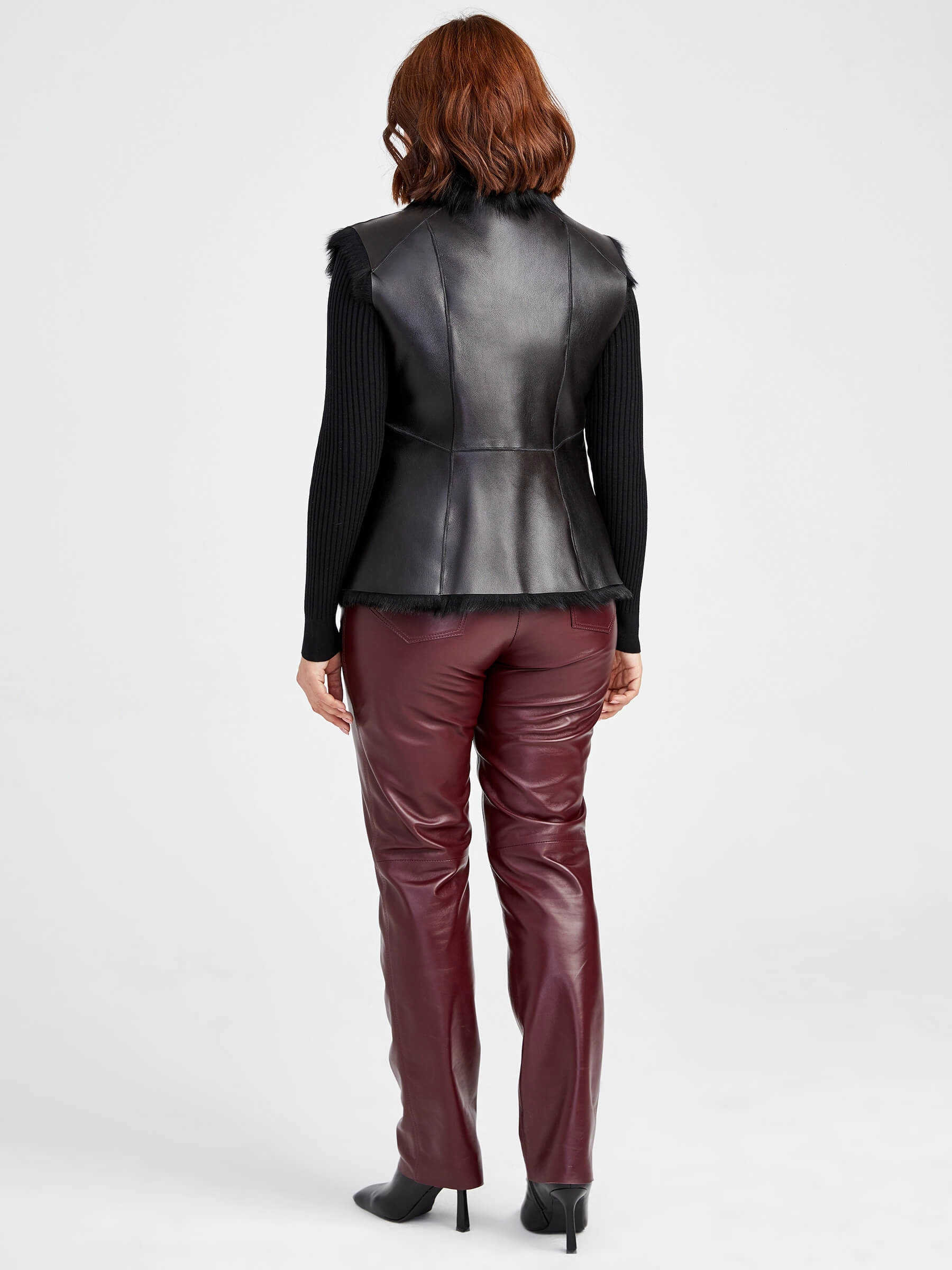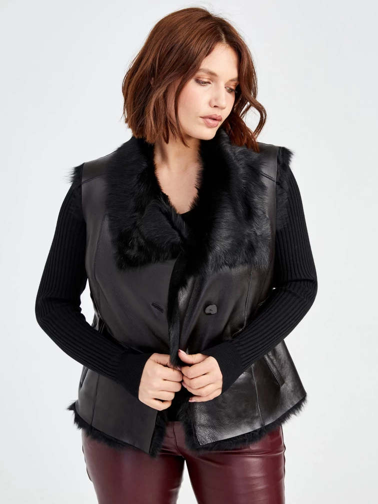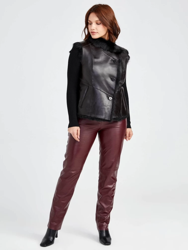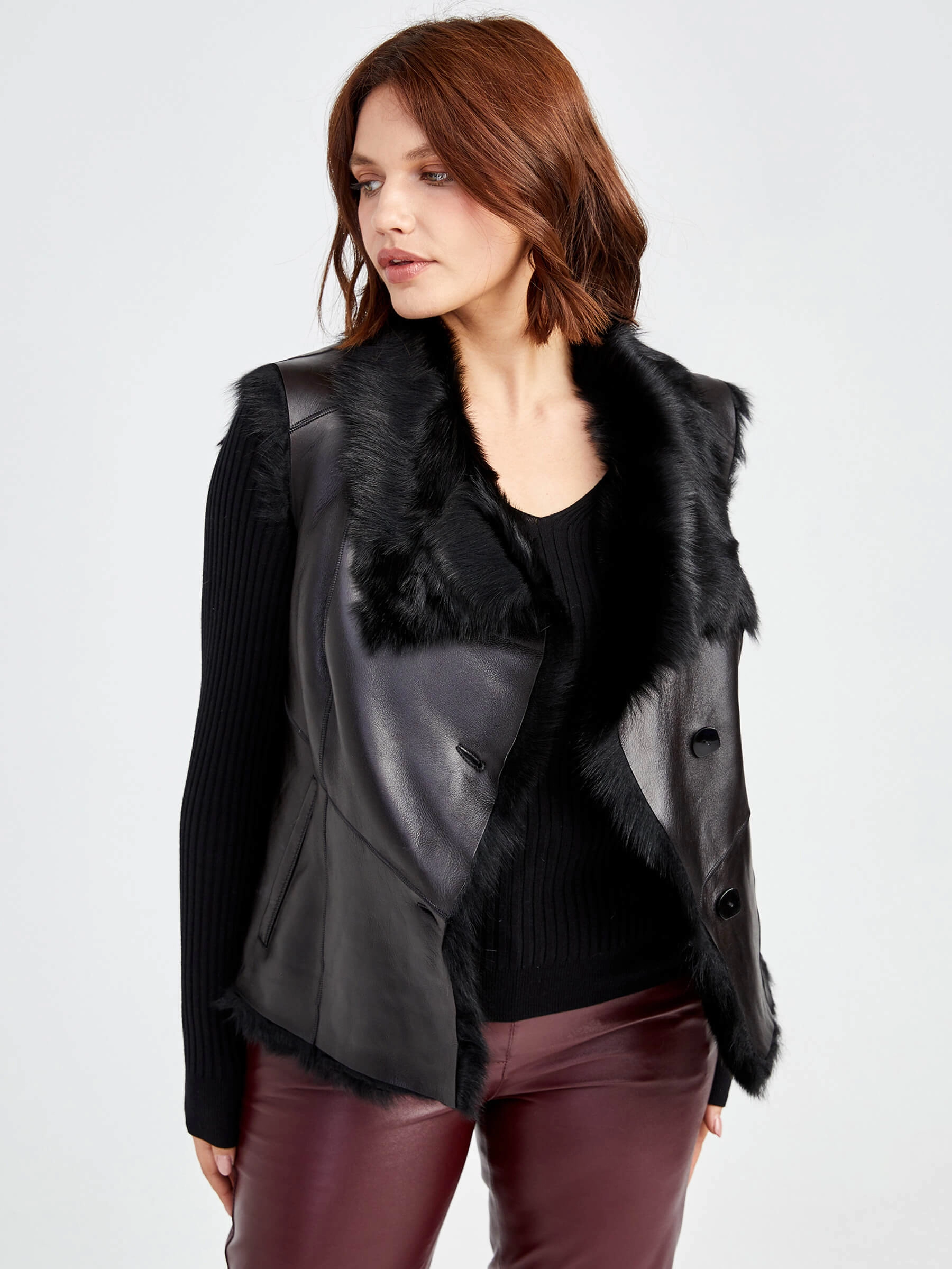 Приталенный женский меховой жилет из тосканы 06 _1, черный, размер 44, артикул 62250