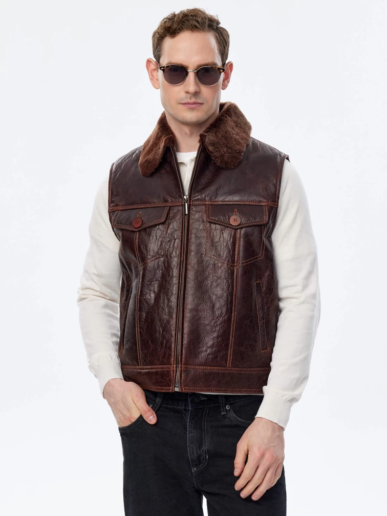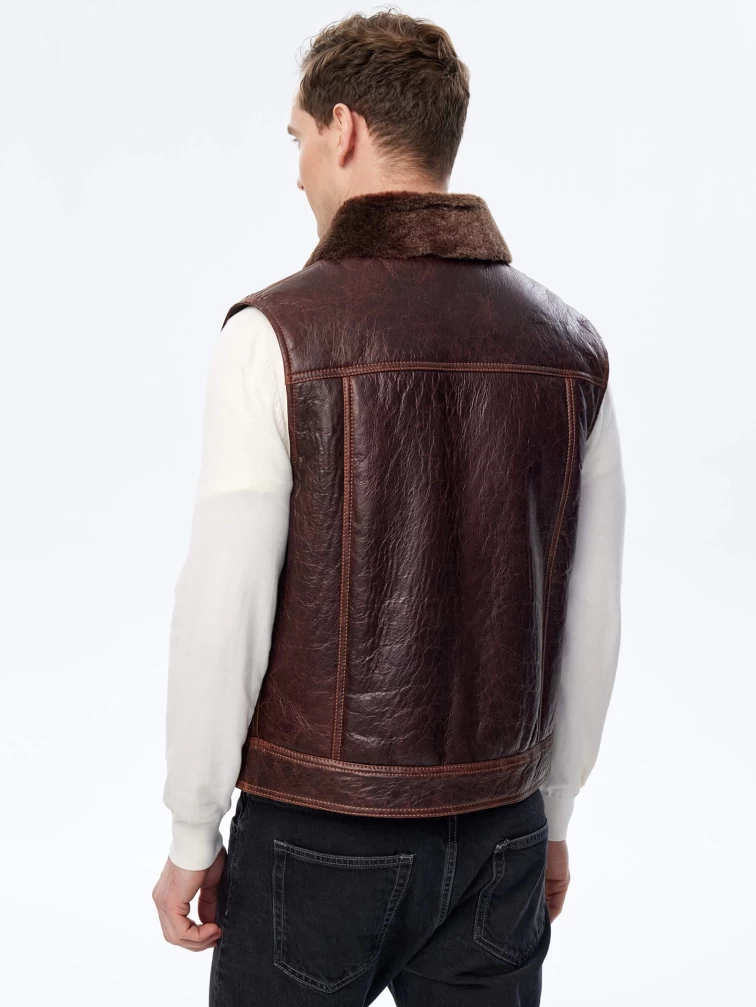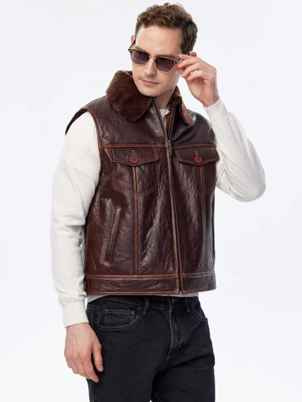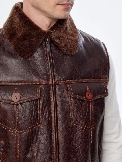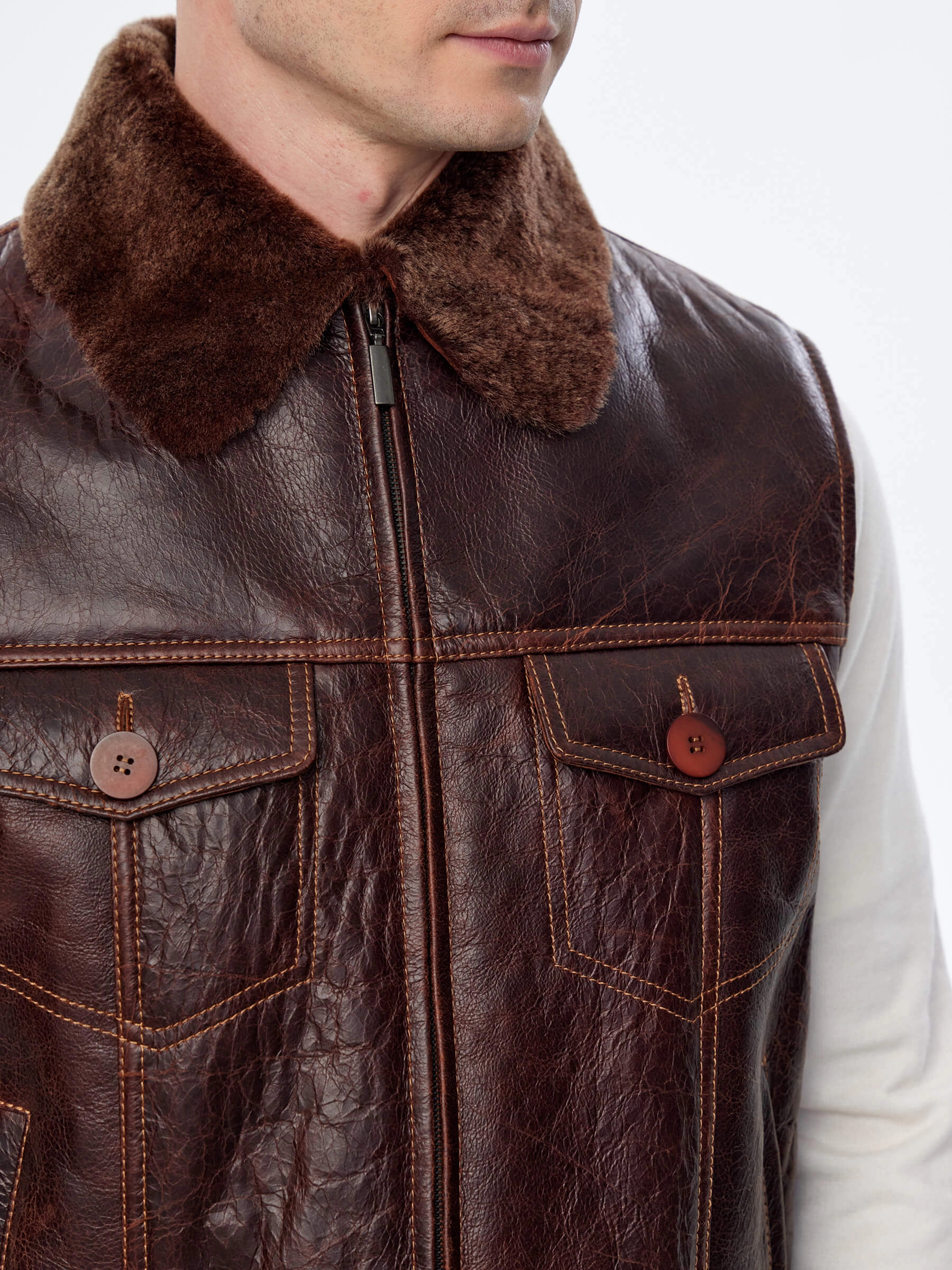 Меховой жилет из овчины мерино мужской 01, виски, размер 52, артикул 71520