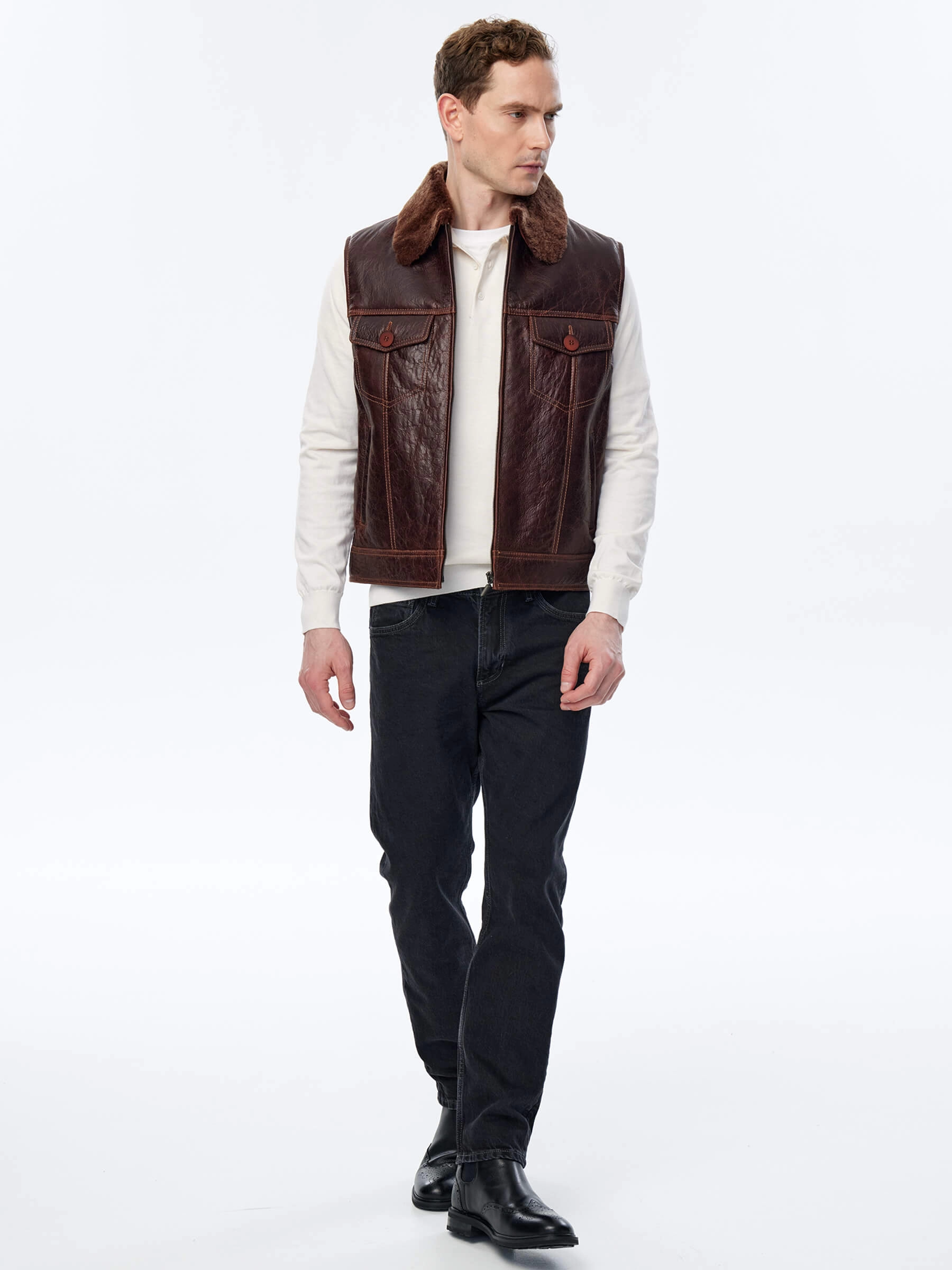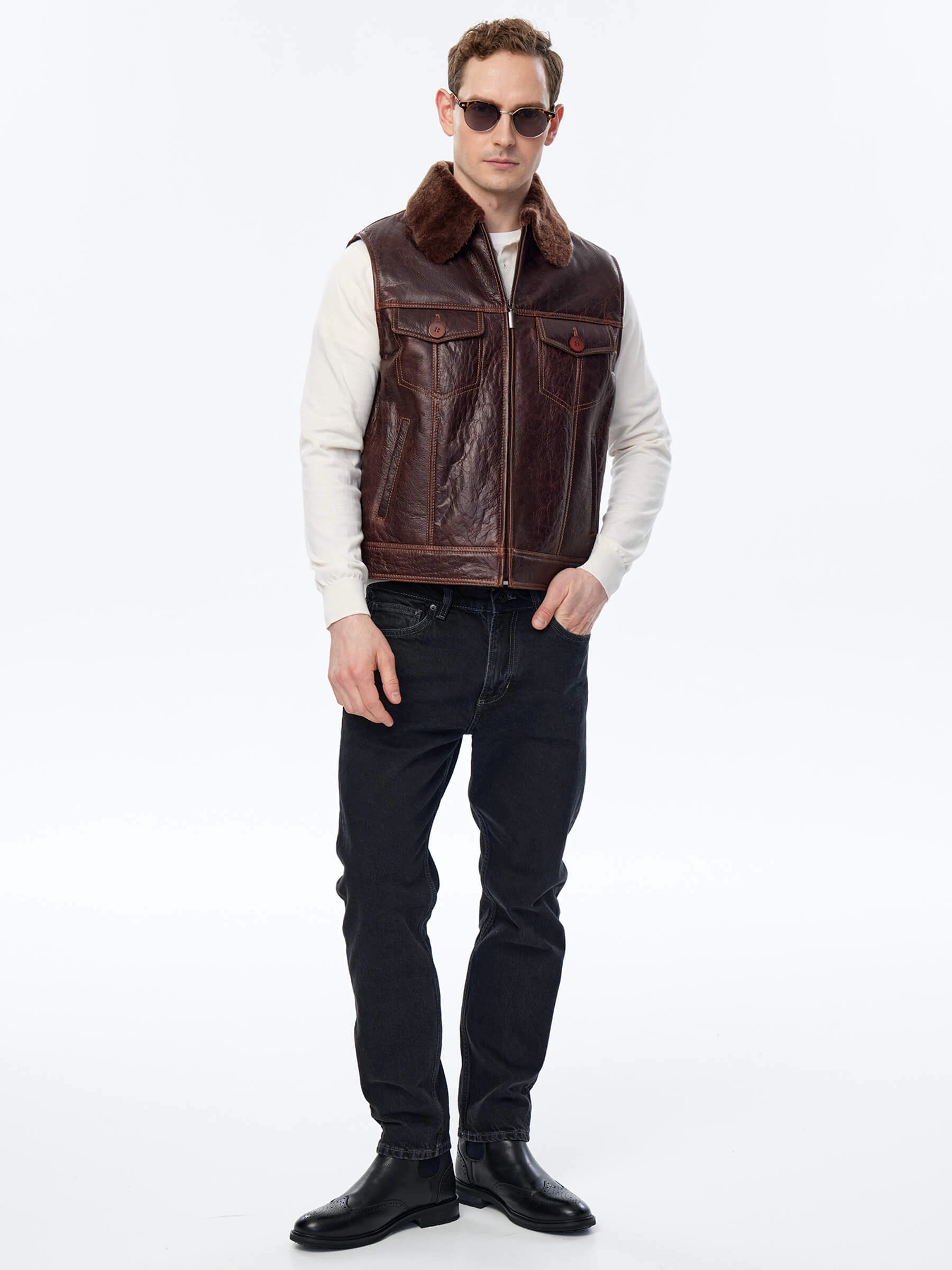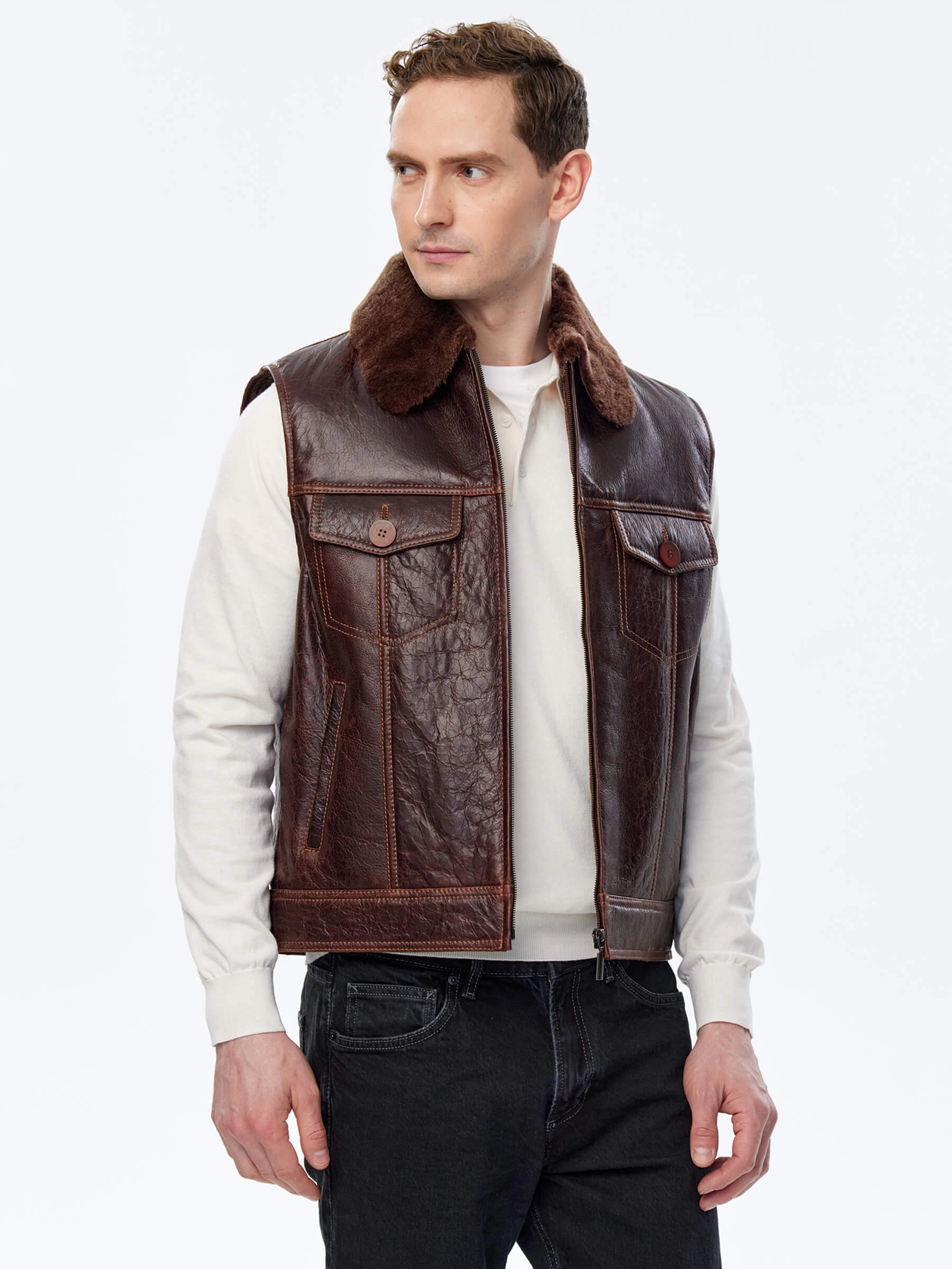 Меховой жилет из овчины мерино мужской 01, виски, размер 52, артикул 71520