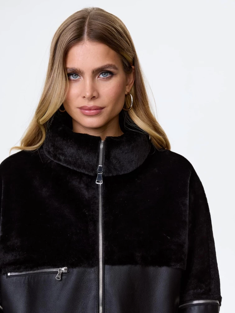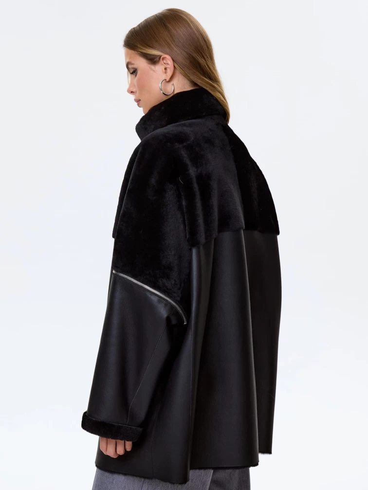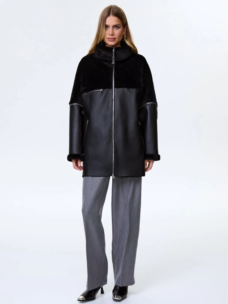 Товар молодежная дубленка оверсайз для женщин премиум класса 2051, черная, размер 48, артикул 64160 выполнен из овчина "мерино" с застежкой молния. Рассчитан на сезон: осень-зима. Длина изделия 80 см, силуэт свободный.