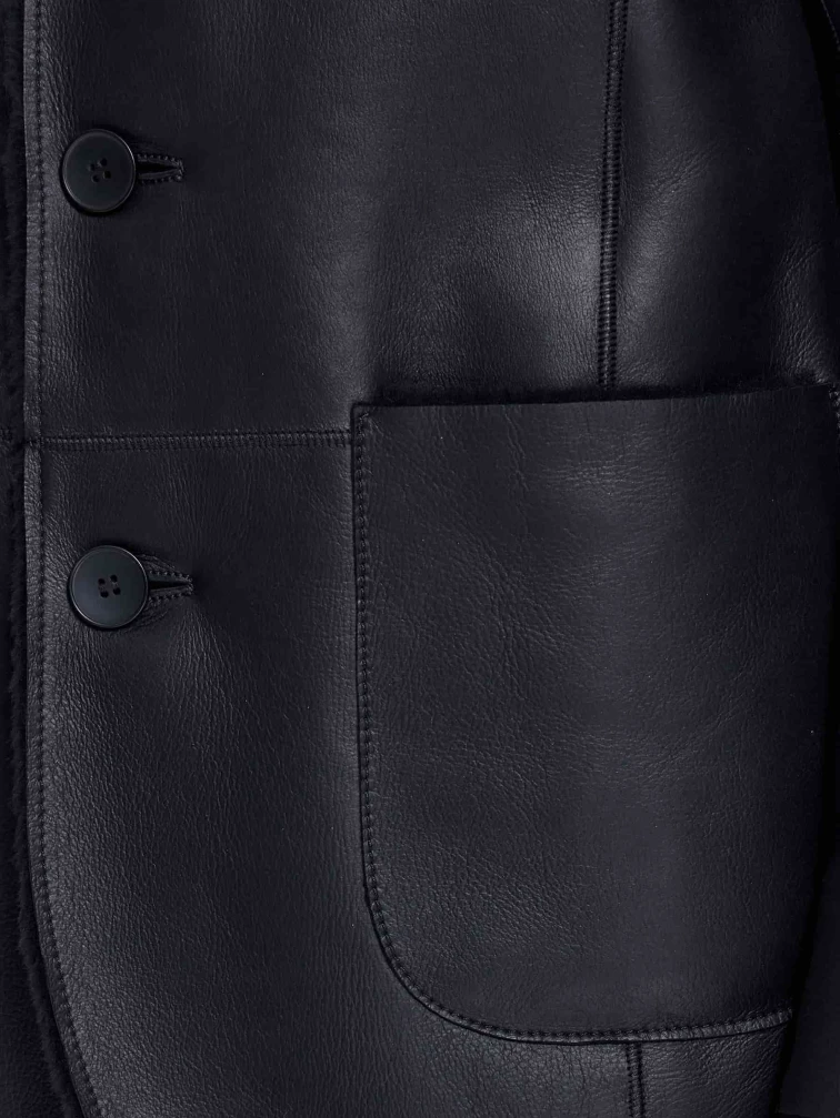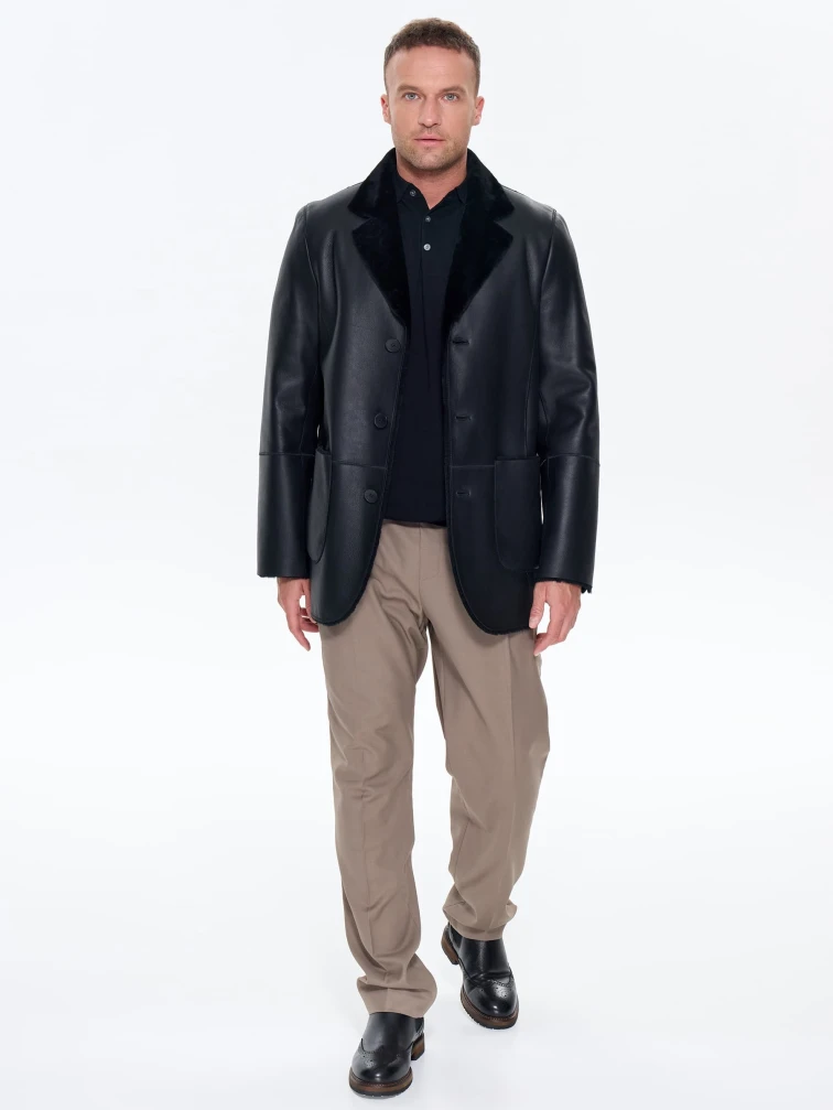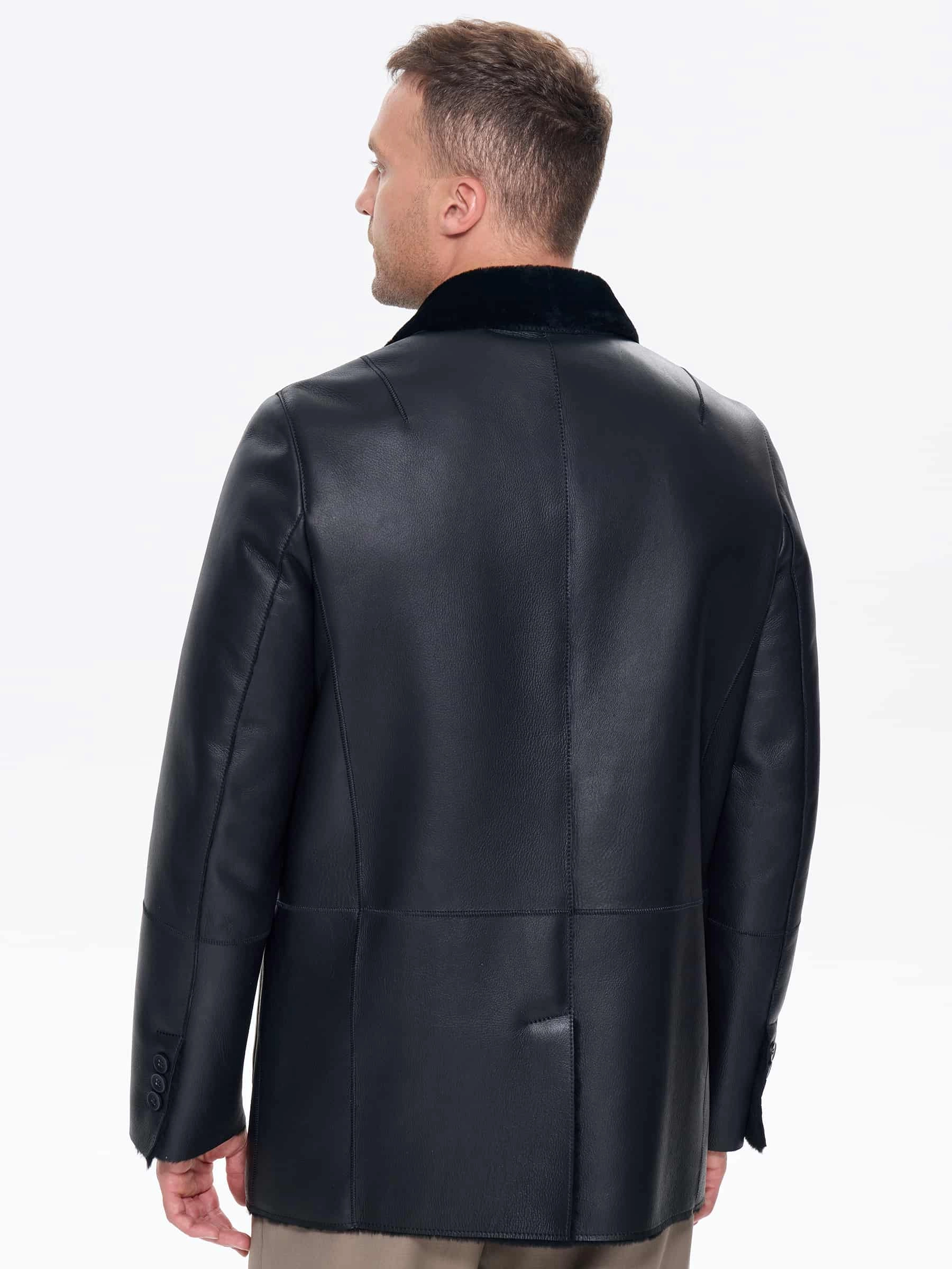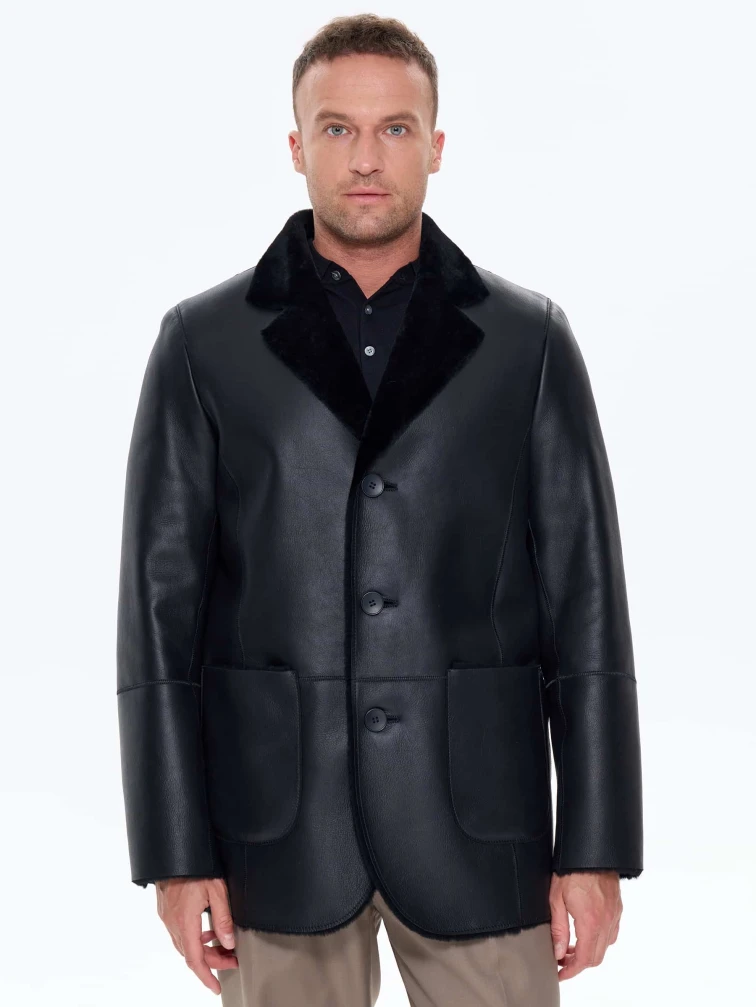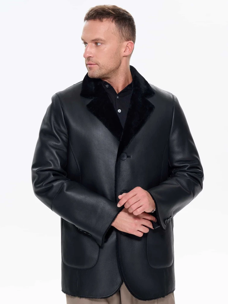Мужская дубленка пиджак премиум класса 443, черная, размер 48, артикул 41210