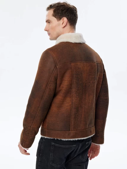Мужская дубленка в джинсовом стиле премиум класса 437, коричневая, размер 50, артикул 71490