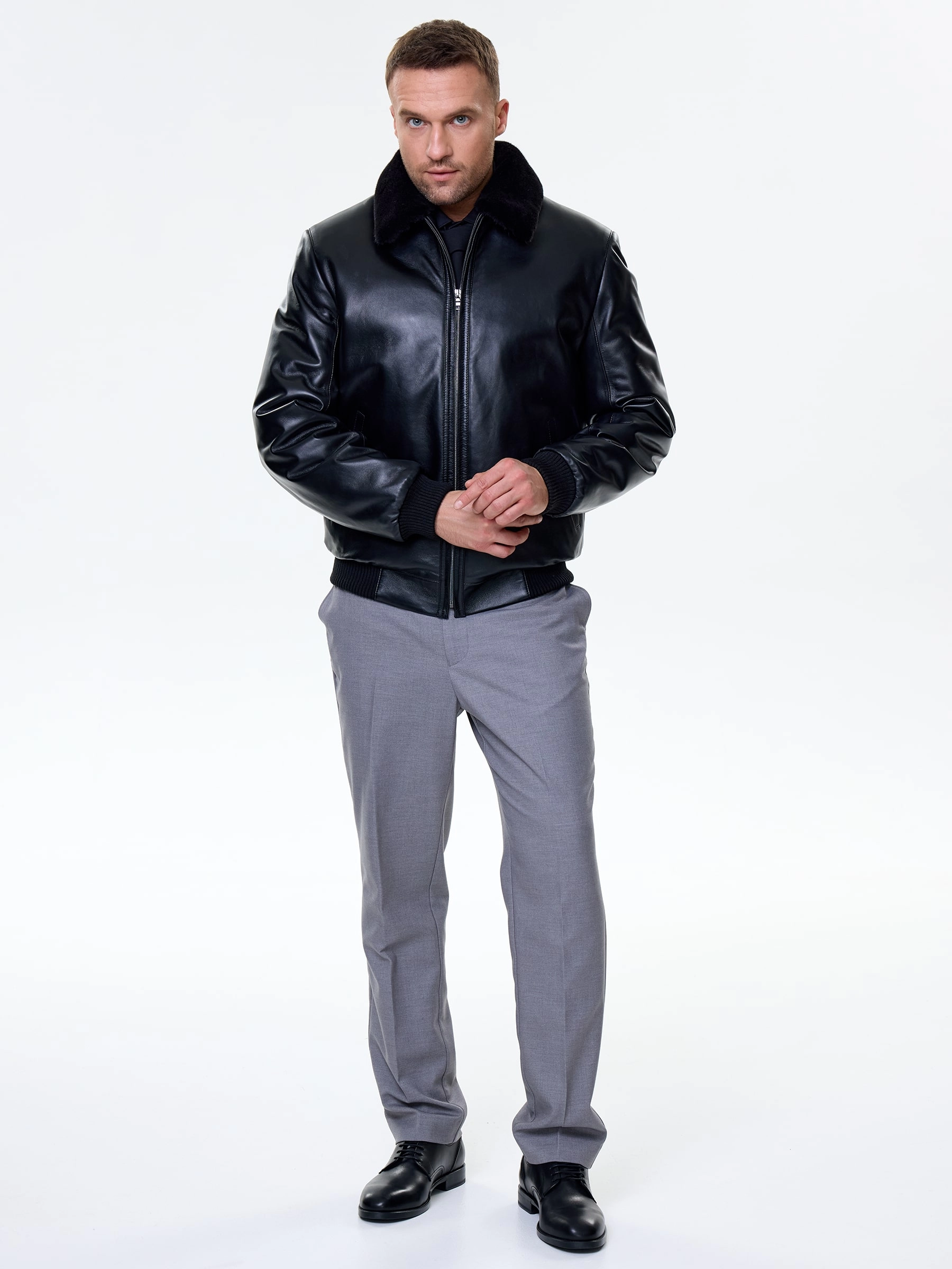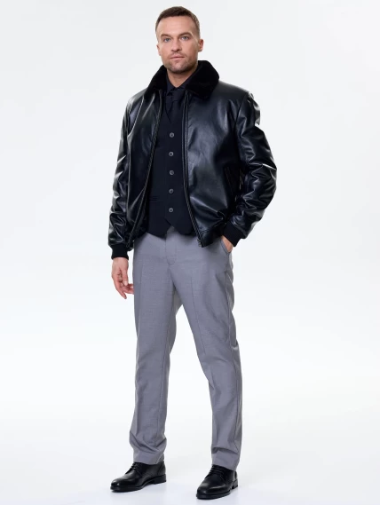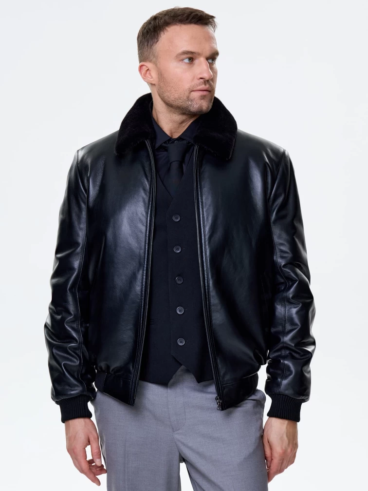 Мужская зимняя кожаная куртка бомбер премиум класса 558мех, черная, размер 50, артикул 41100
