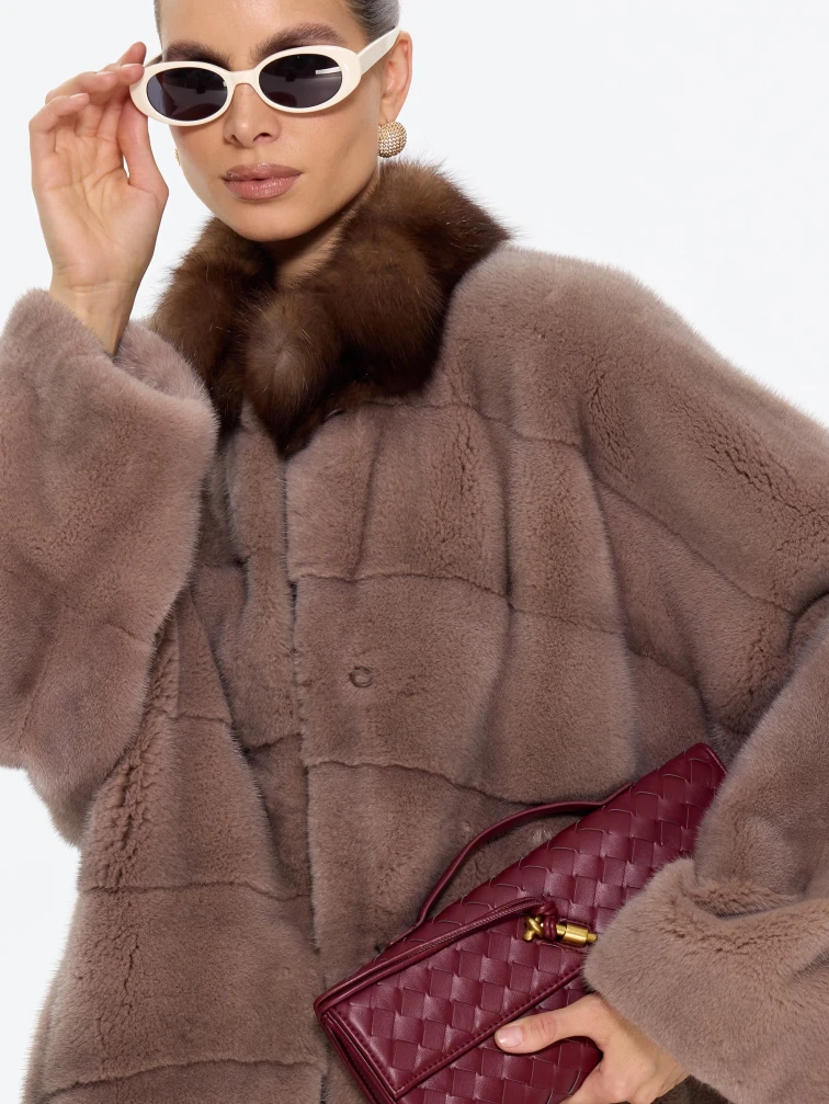 Роскошная длинная шуба из меха норки премиум-класса в шоколадном оттенке "какао" с элегантной стойкой, отделанной мехом соболя. Модель прямого силуэта длиной 110 см с диагональной раскладкой меха и свободным рукавом кимоно подчеркивает аристократическую элегантность и неповторимый шарм. Стилисты рекомендуют носить эту шубу с кожаными сапогами-челси и узкими брюками для повседневного образа или с платьем-футляром и жемчужными серьгами для вечернего выхода. Идеальное сочетание вечной классики и современной роскоши для истинных ценительниц утонченного стиля.