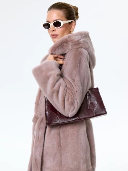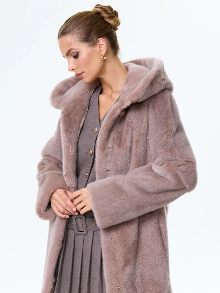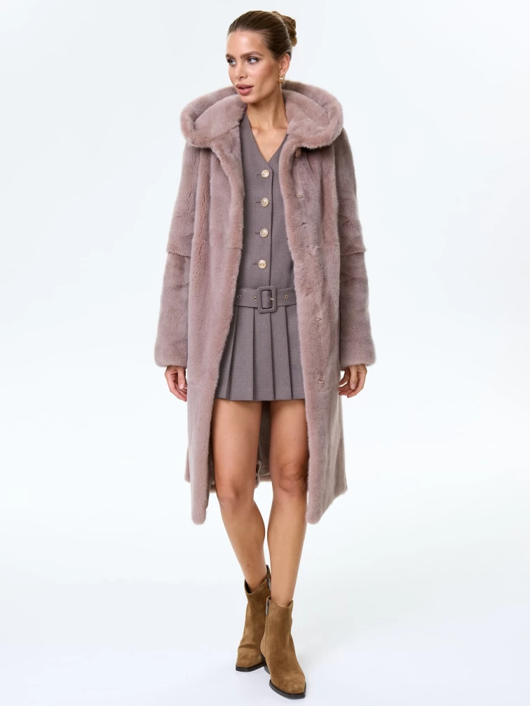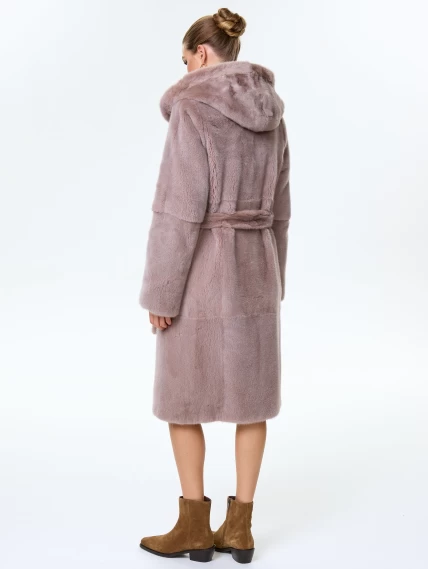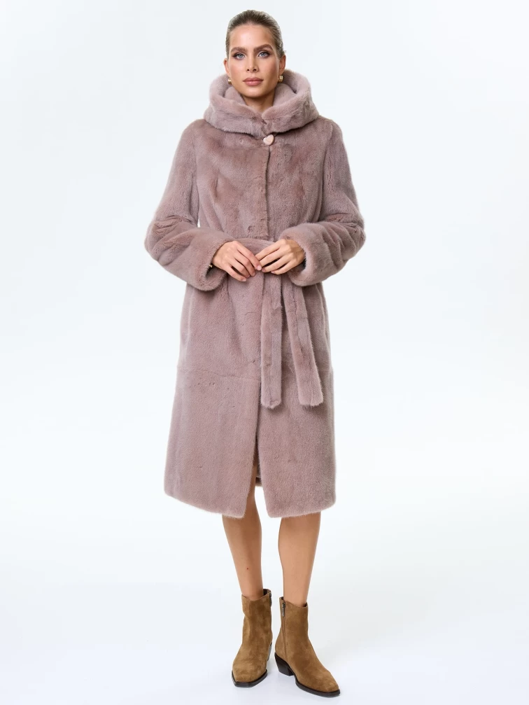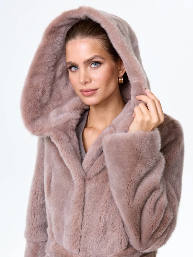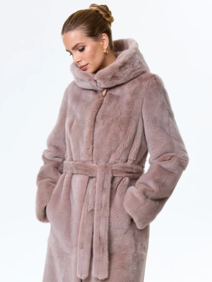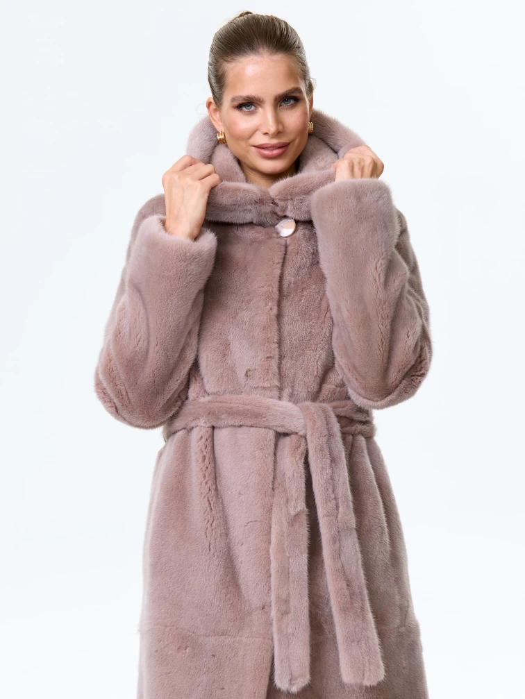 Норковая шуба женская с капюшоном под пояс Лолита(к), пудровая, размер 46, артикул 34170