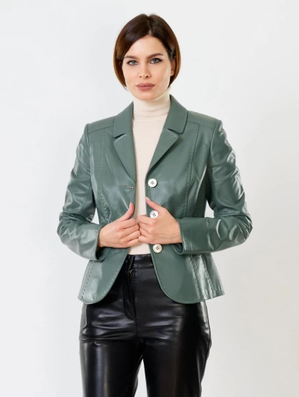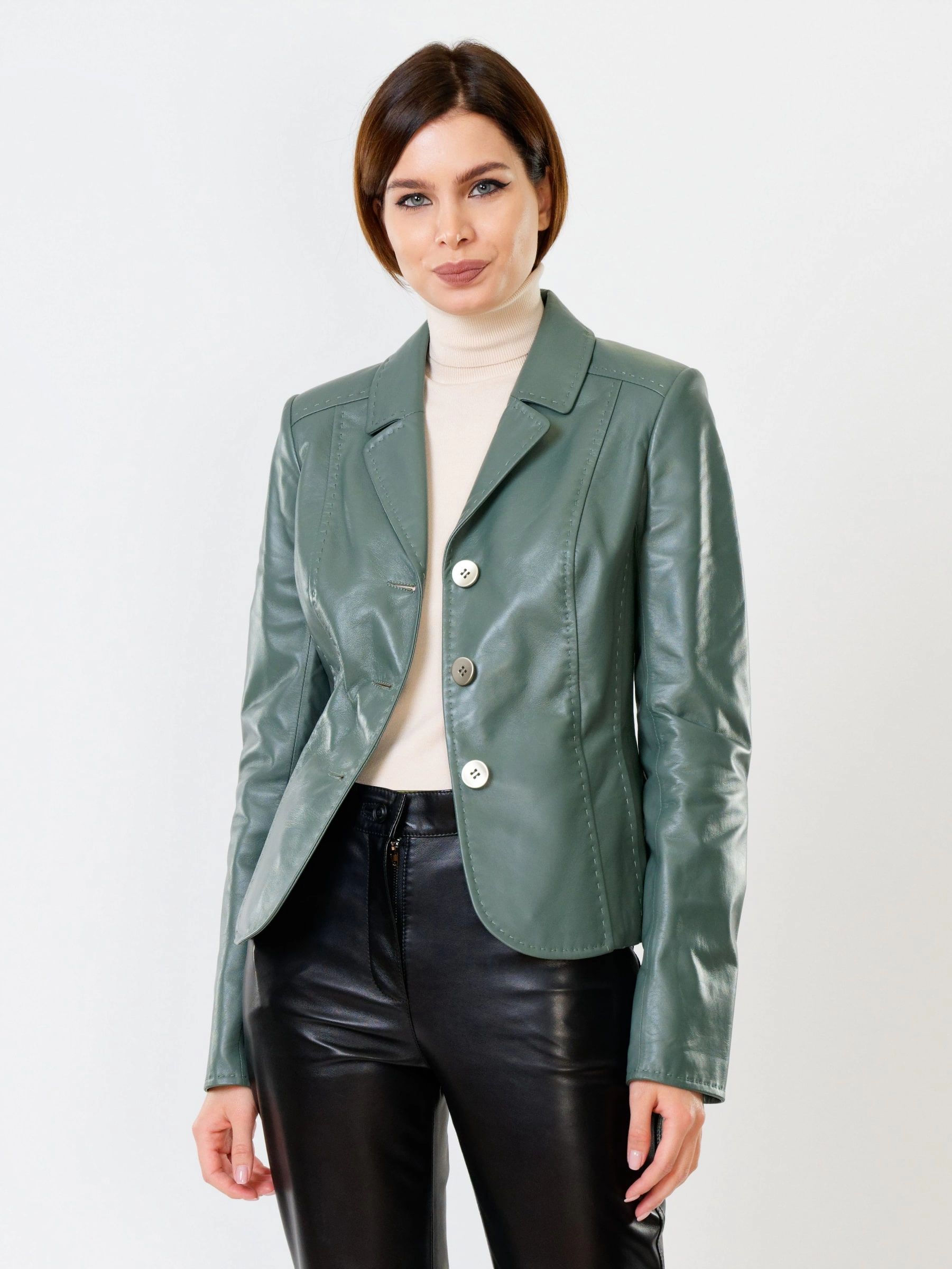 Оливковый кожаный женский пиджак премиум класса 316рс, размер 44, артикул 90250