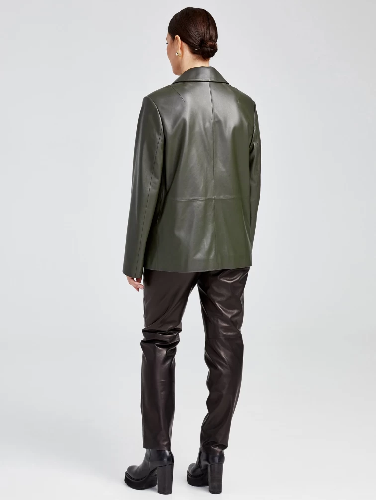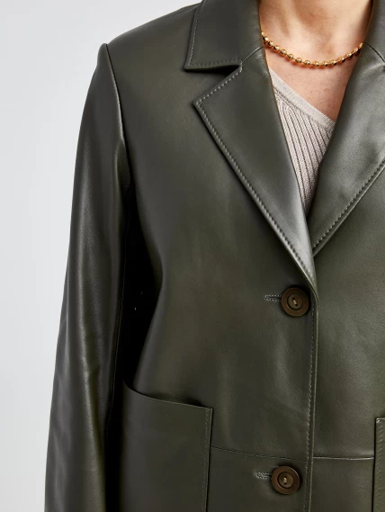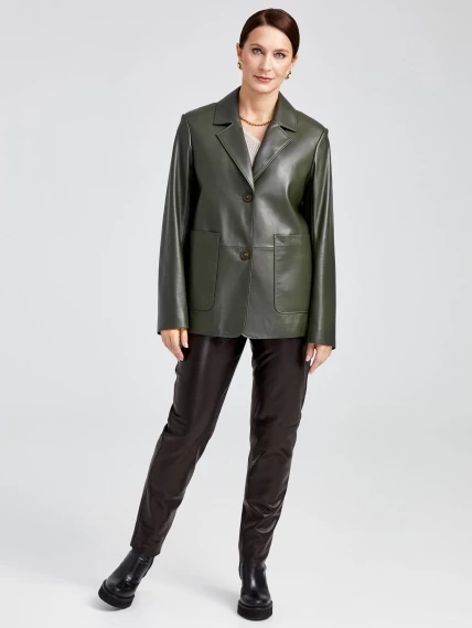 Оливковый женский кожаный пиджак премиум класса 3016, размер 46, артикул 91630