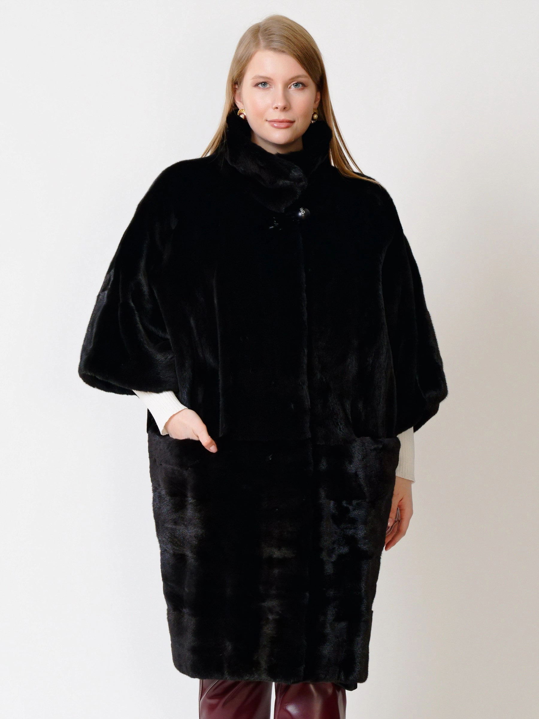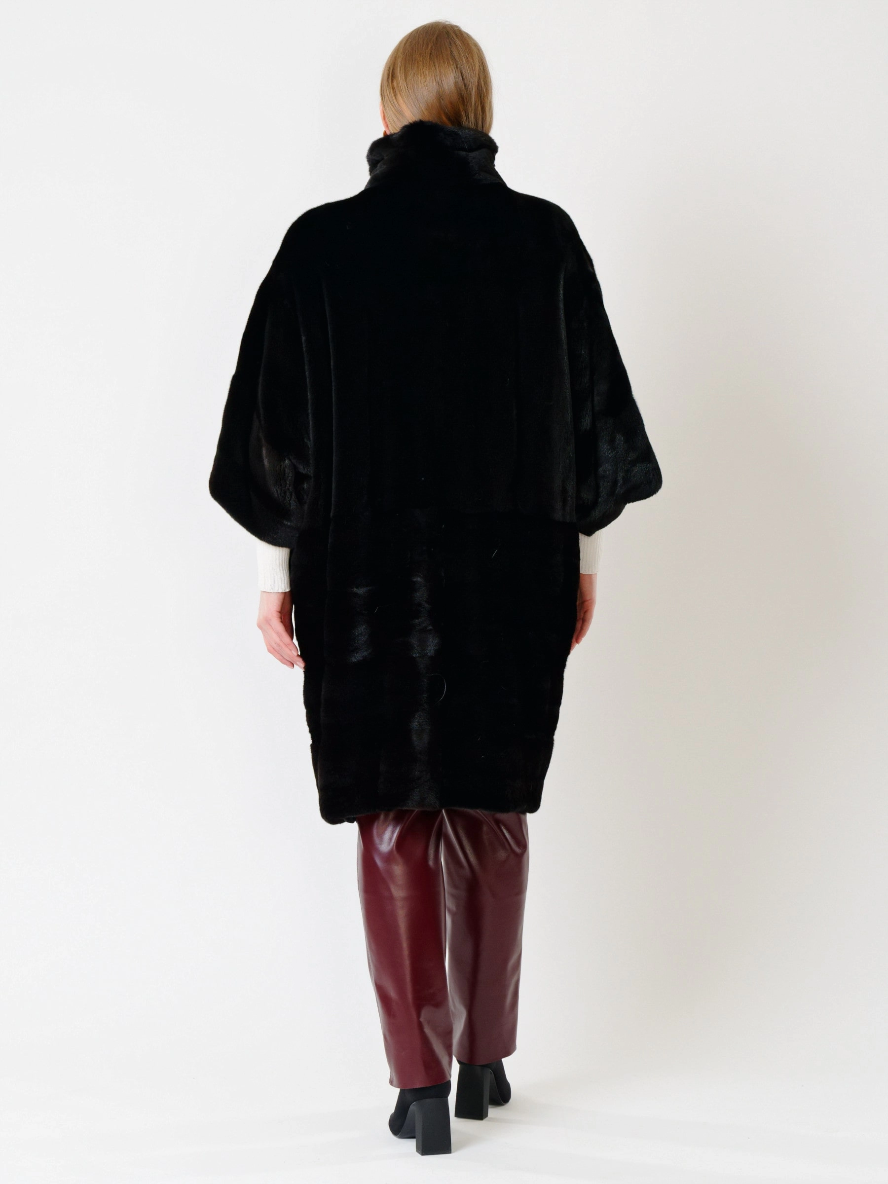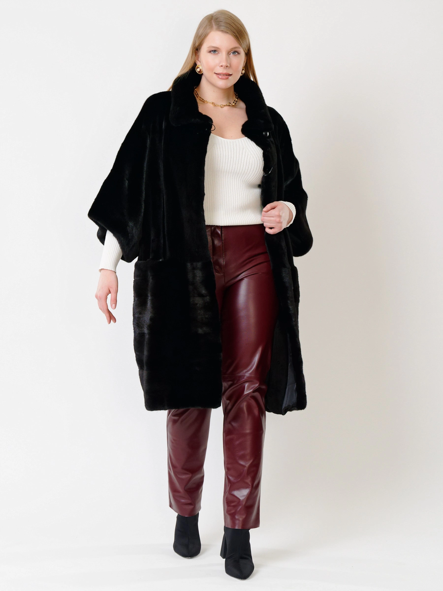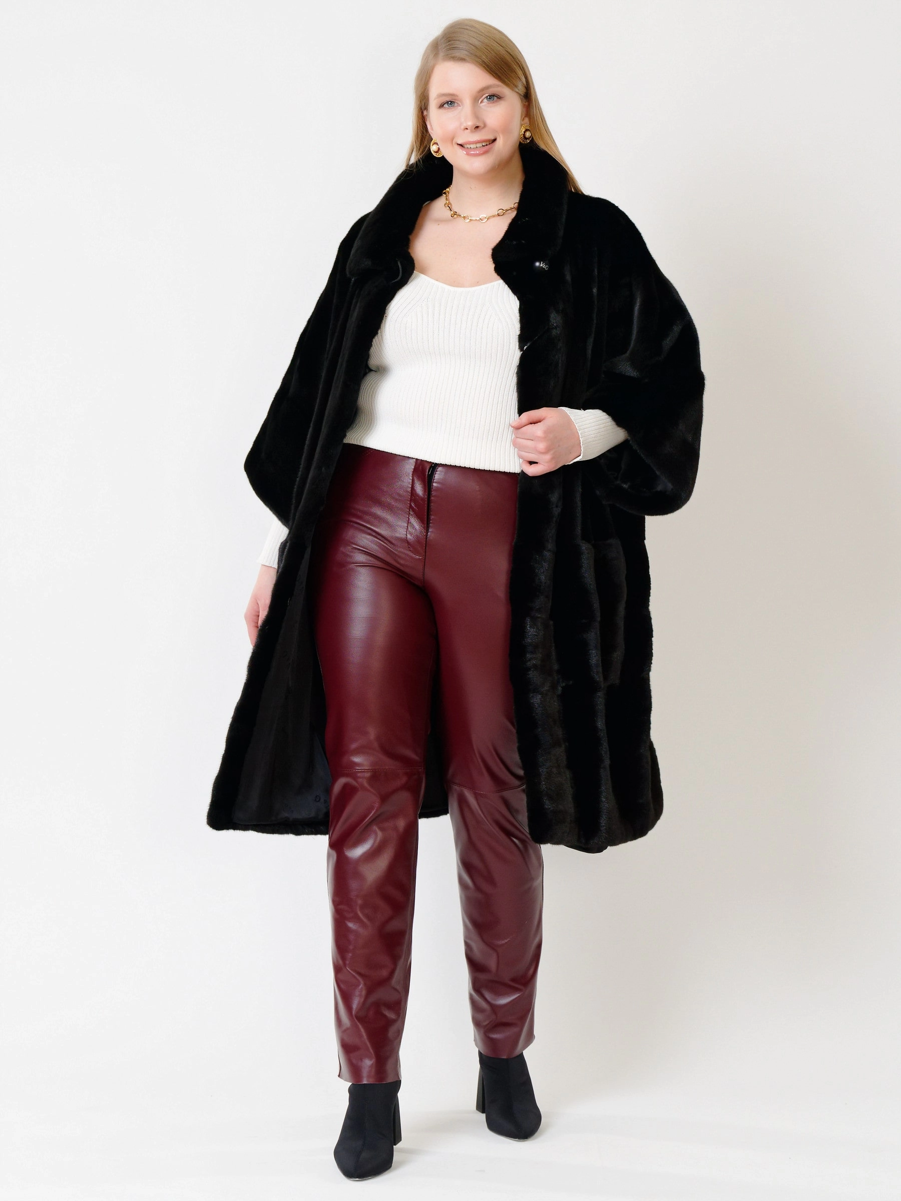 Товар зимний комплект женский: пальто из меха норки 402 + брюки 02, черный/бордовый, р. 48, арт. 111268.