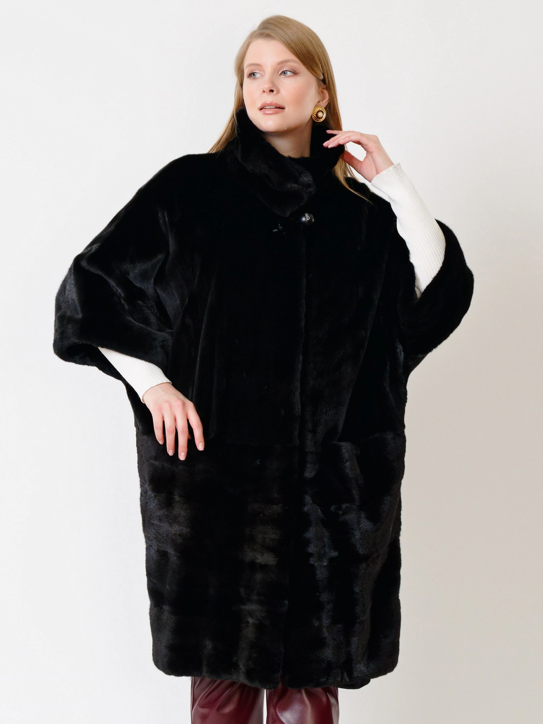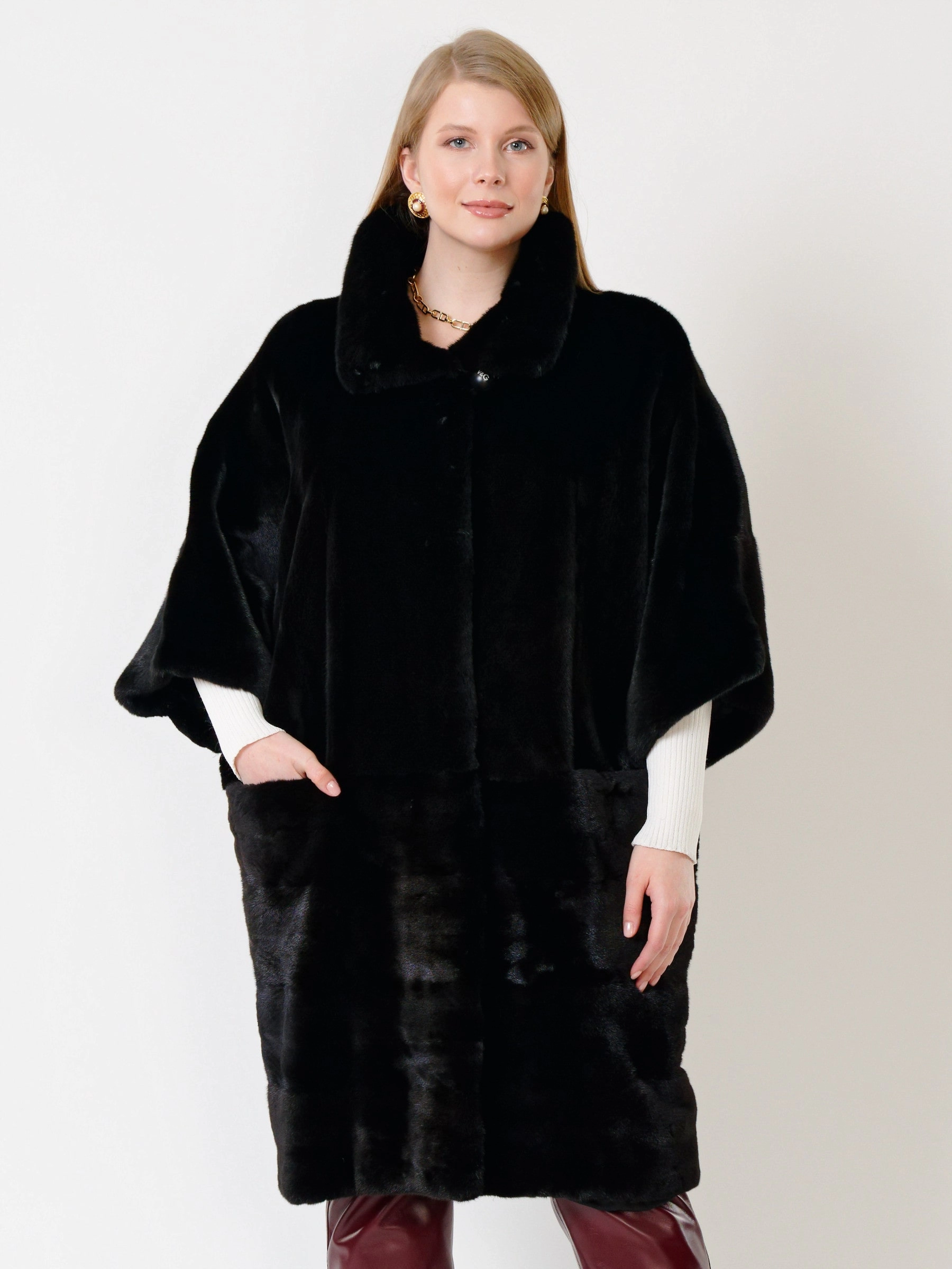 Стильная шуба из меха норки датской селекции. Нежнейший мех, максимально густой, с коротким остевым волосом. Объёмные рукава ¾. Эффектным дополением станут кожаные брюки. Ювелирная работа наших портных. Бесподобный комфорт. Премиальное качество.