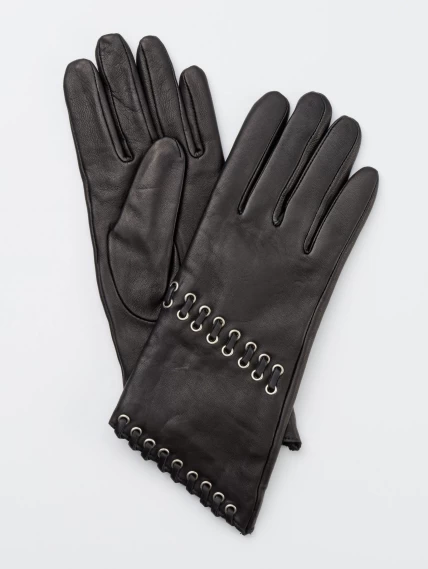 Перчатки кожаные женские IS00575, черные, размер 7, артикул 20240