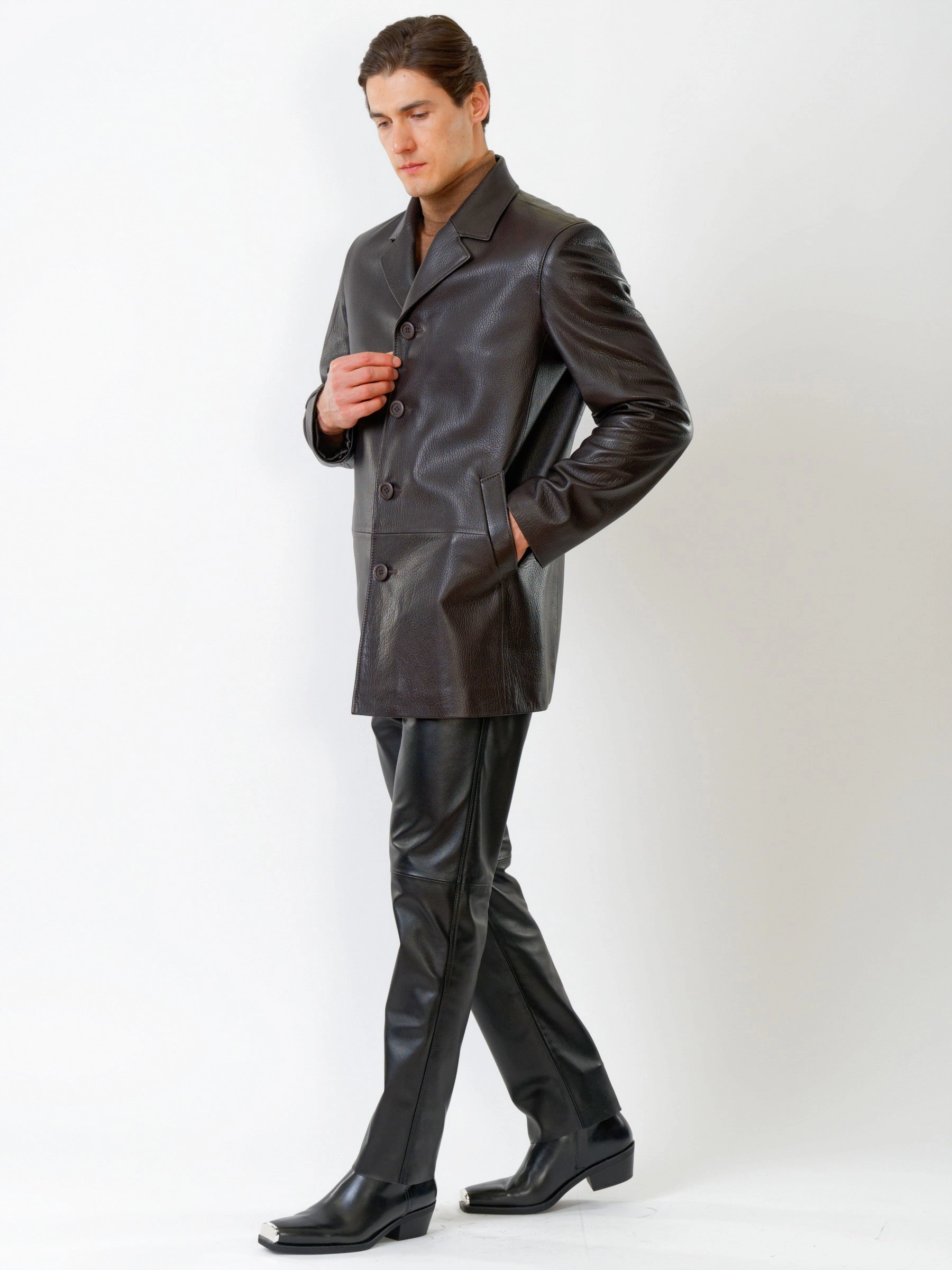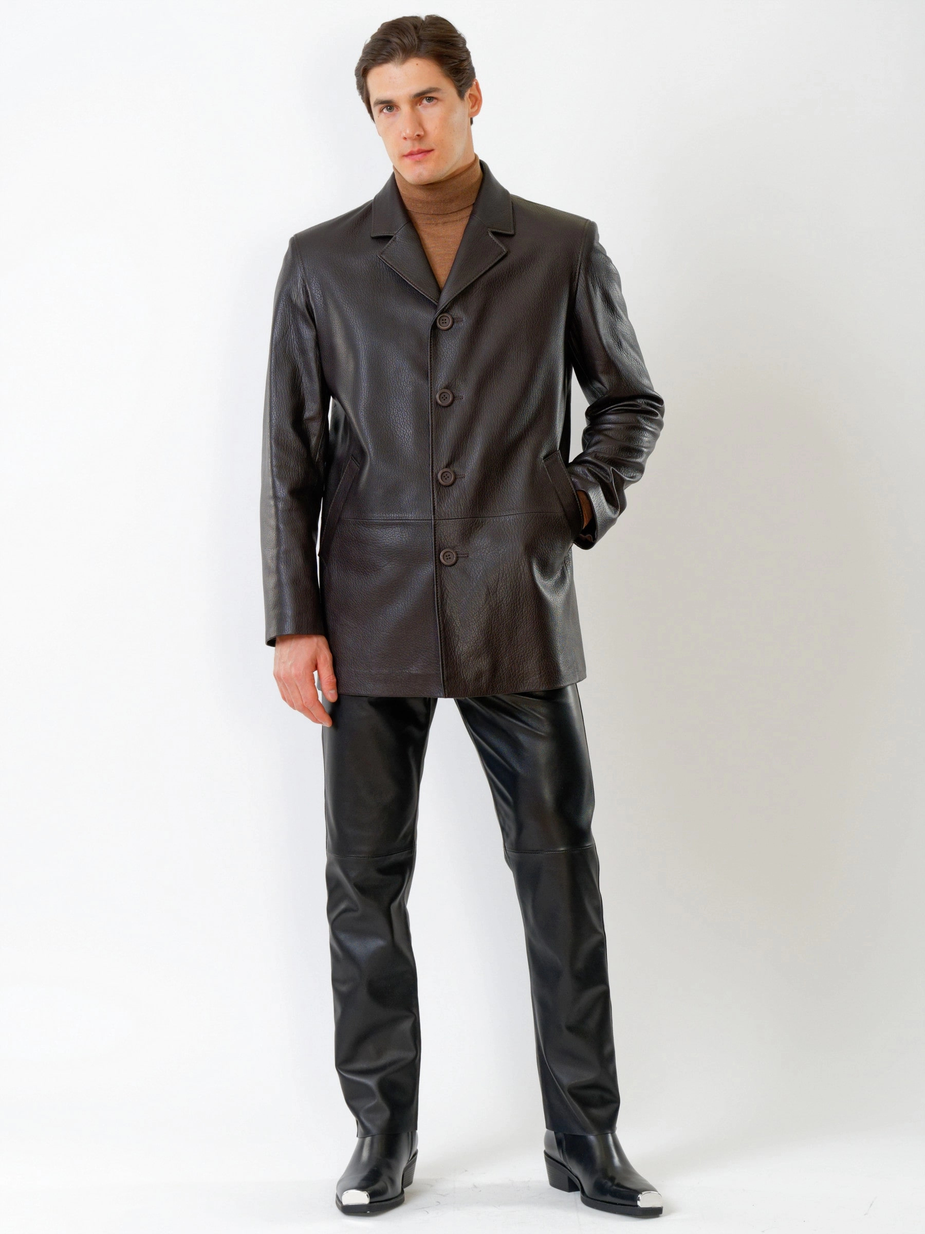Товар кожаный костюм мужской: пиджак 21/1 + брюки 01, коричневый/черный, р. 48, артикул 140010 выполнен из натуральной кожи. Рассчитан на сезон: демисезон.