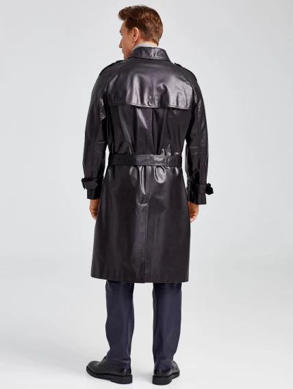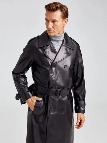 Мужской двубортный кожаный плащ премиум класса 553, черный, размер 52, артикул 28910