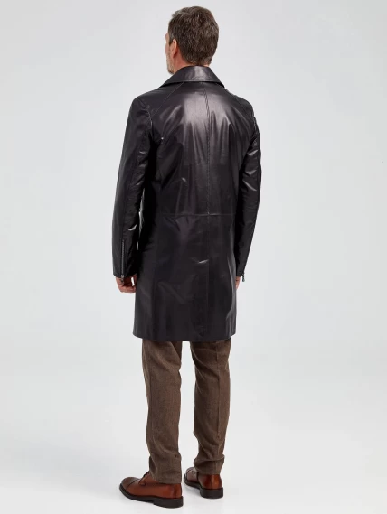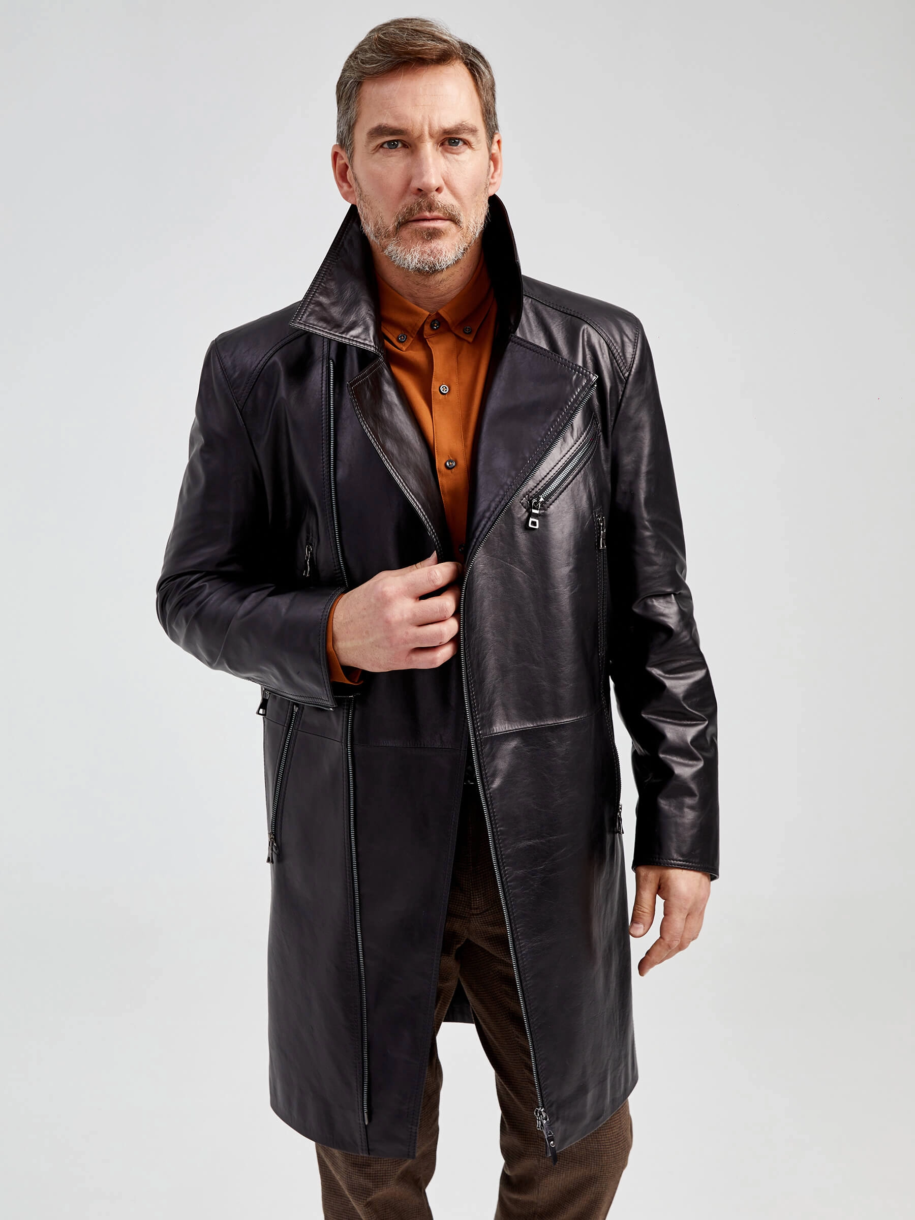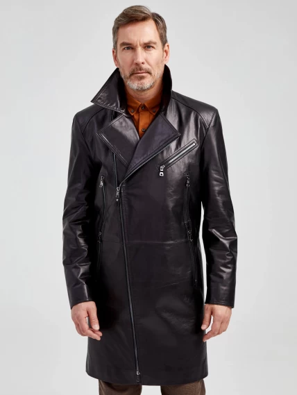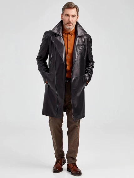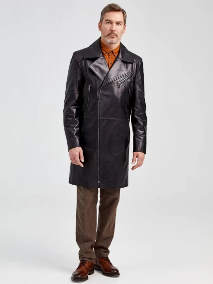 Мужской кожаный плащ косуха премиум класса 554, черный, размер 54, артикул 40551