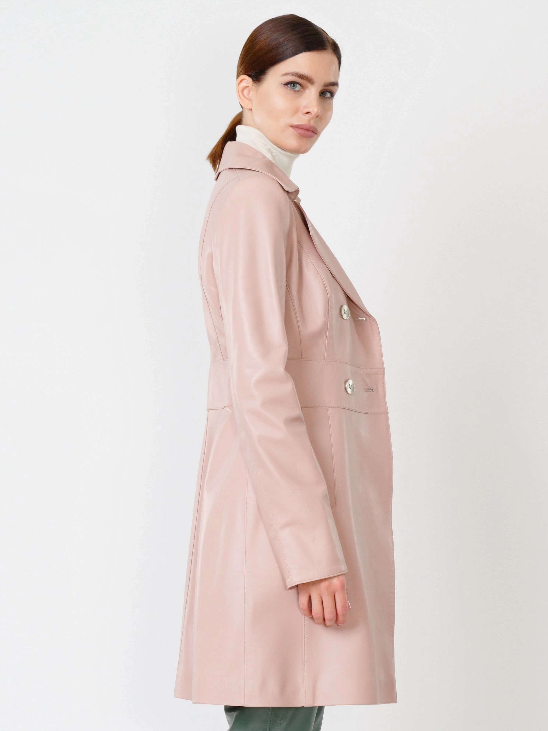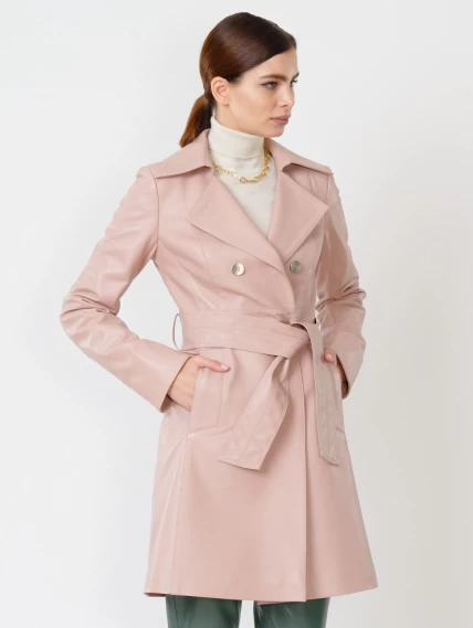 Кожаный двубортный женский плащ с поясом 338, пудровый, размер 44, артикул 90971
