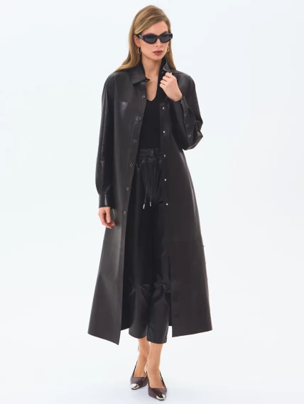 Плащ женский кожаный премиум класса 3091, черный, размер 50, артикул 24390