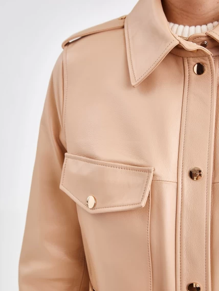 Платье рубашка кожаная женская из натуральной кожи премиум класса 03, бежевая, размер 48, артикул 23181