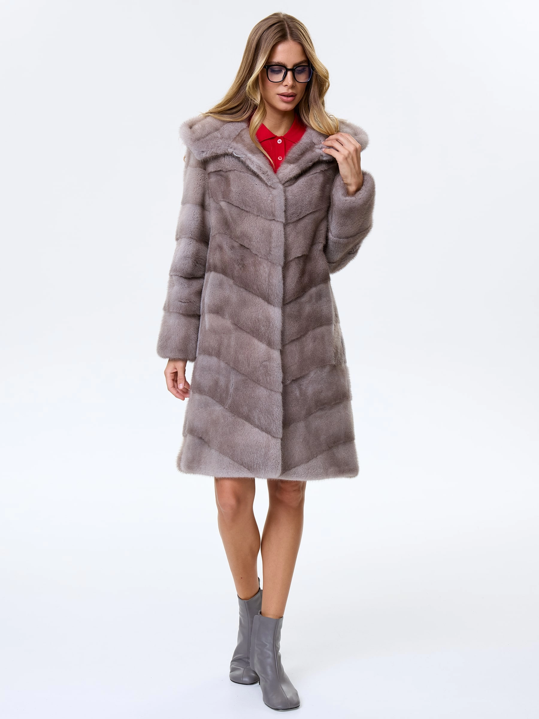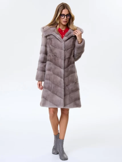 Полупальто с капюшоном из меха норки для женщин Галя(к), серо-голубое, размер 44, артикул 34100