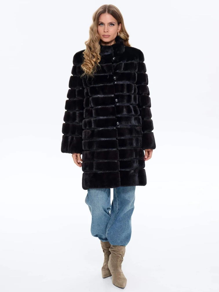 Товар поперечная женская шуба из меха норки braschi elm 047, черная, размер 46, артикул 34430 выполнен из норка с застежкой пуговицы. Рассчитан на сезон: зима. Длина изделия 90 см, силуэт прямой.
