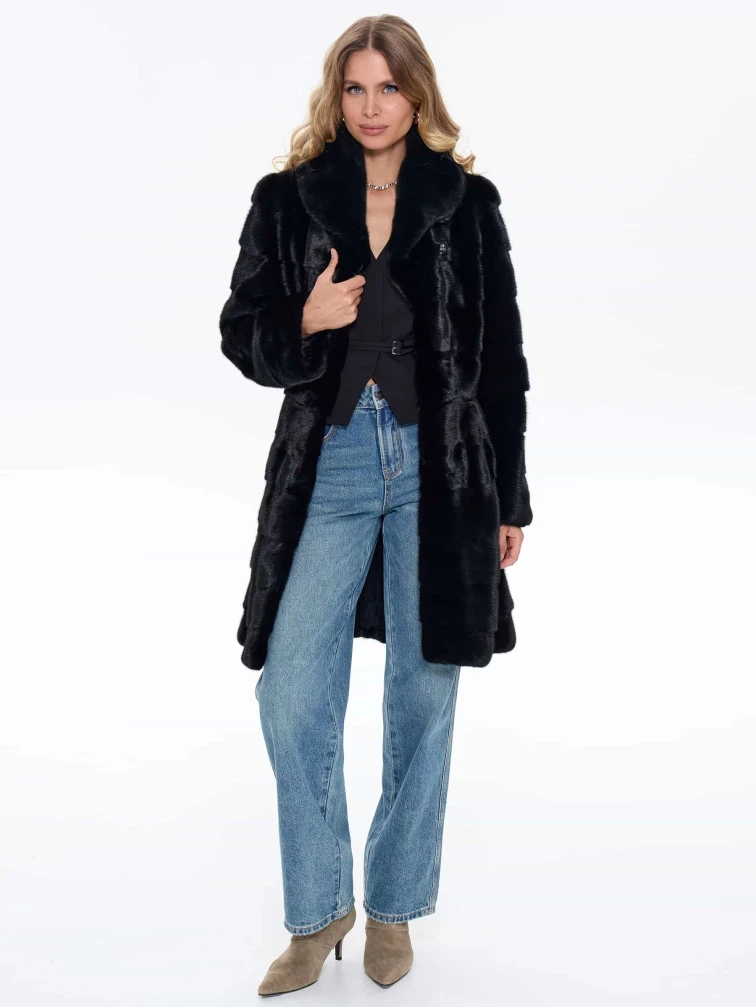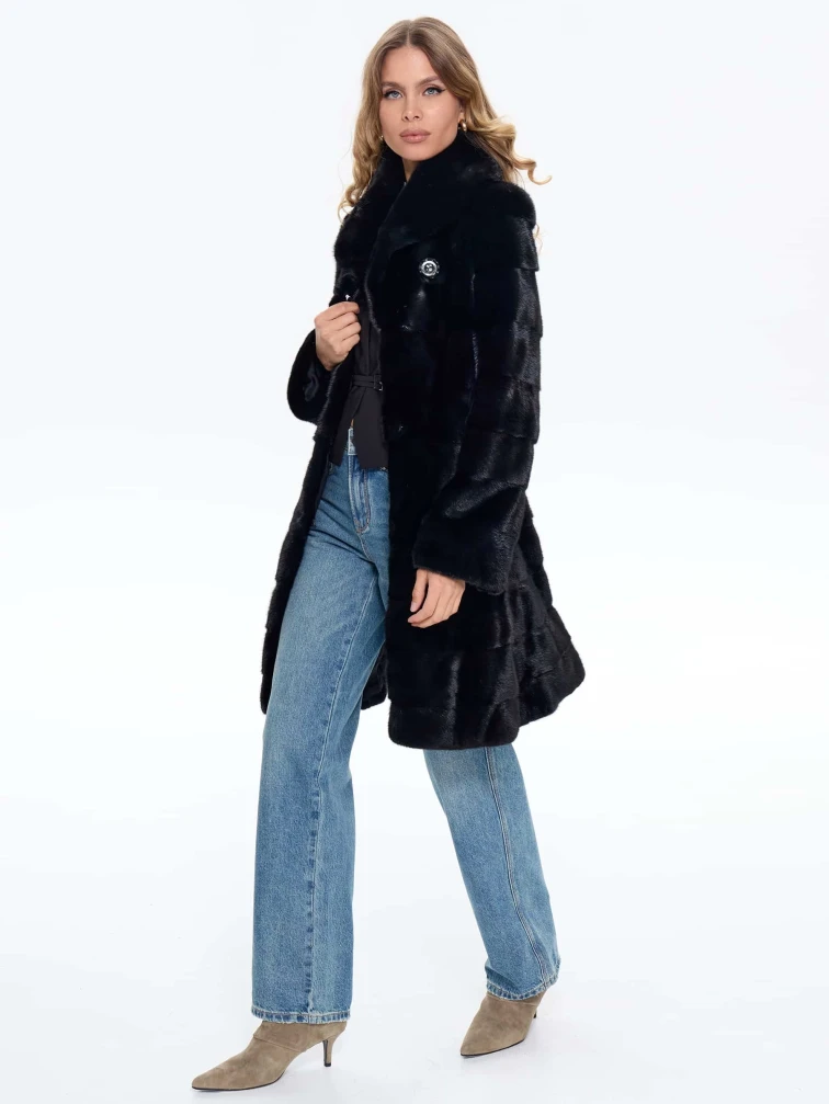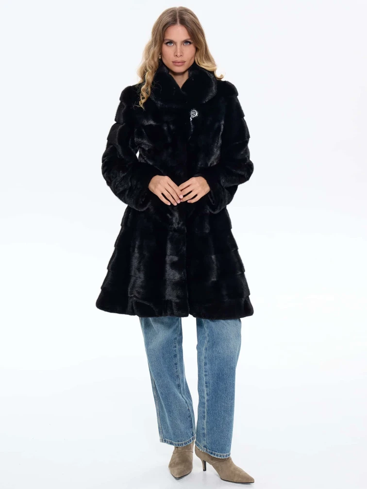 Товар поперечная женская шуба из меха норки manakas wmf 10026, черная, размер 42, артикул 34300 выполнен из норка с застежкой клипсы. Рассчитан на сезон: зима. Длина изделия 93 см, силуэт приталенный .