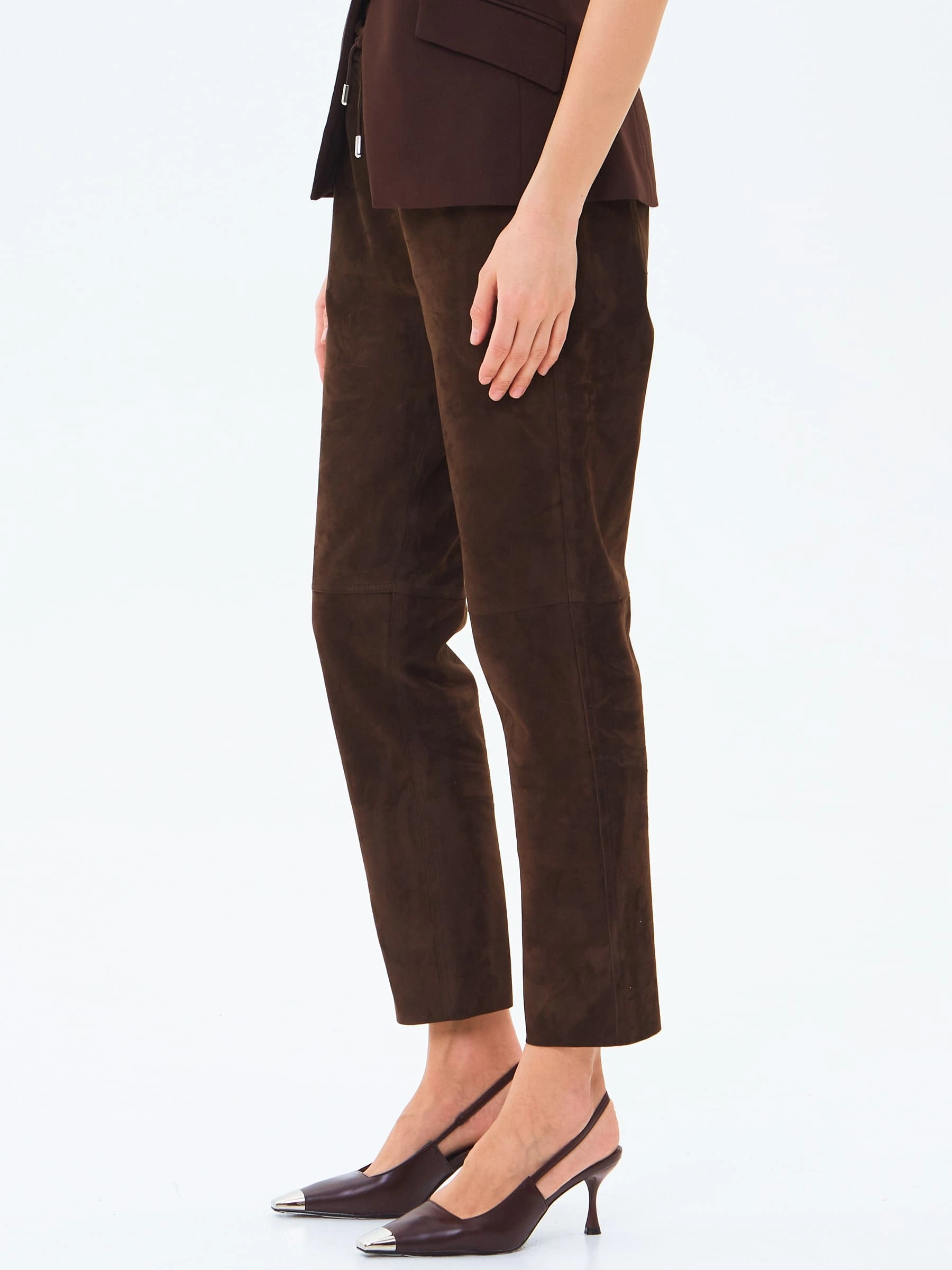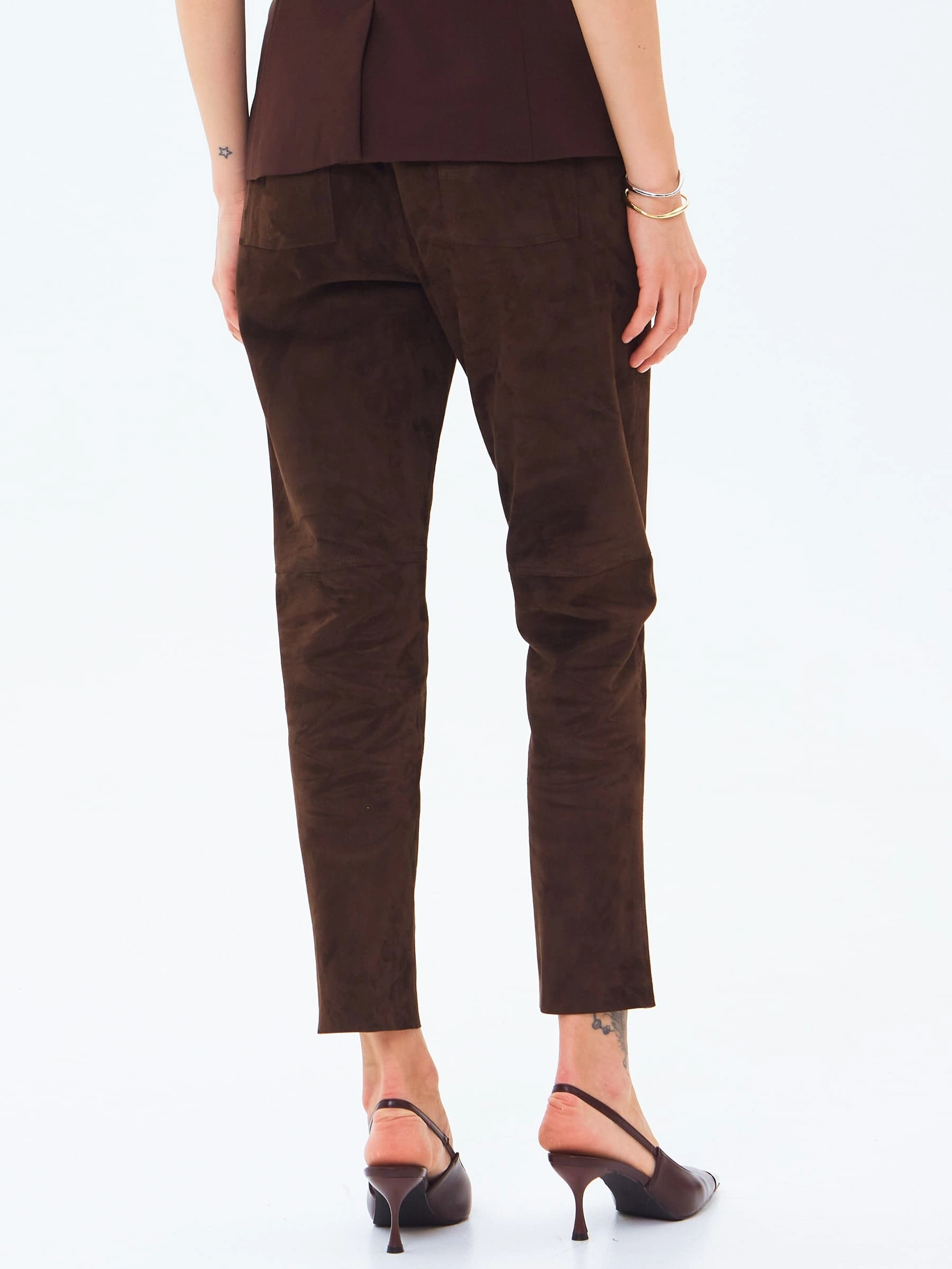 Замшевые женские брюки 09з, коричневые, размер 46, артикул 86030