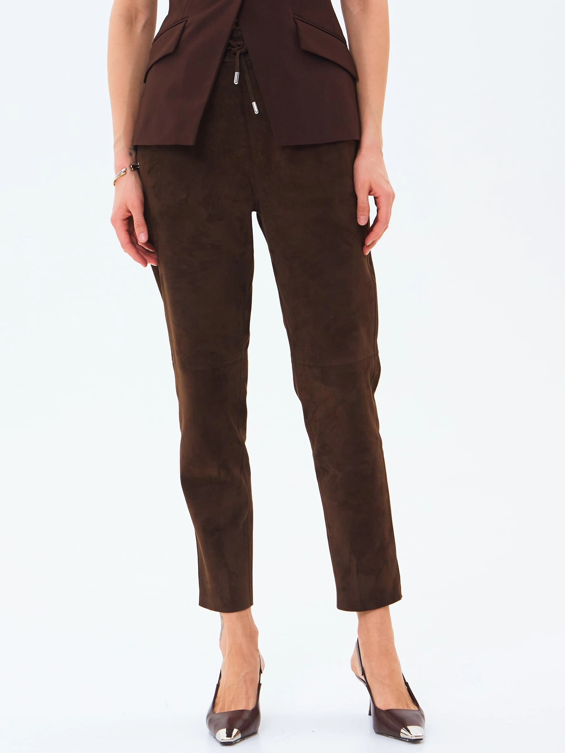 Товар замшевые женские брюки 09з, коричневые, размер 46, артикул 86030 выполнен из натуральной замши с застежкой кулиски. Рассчитан на сезон: всесезон.силуэт прямой.