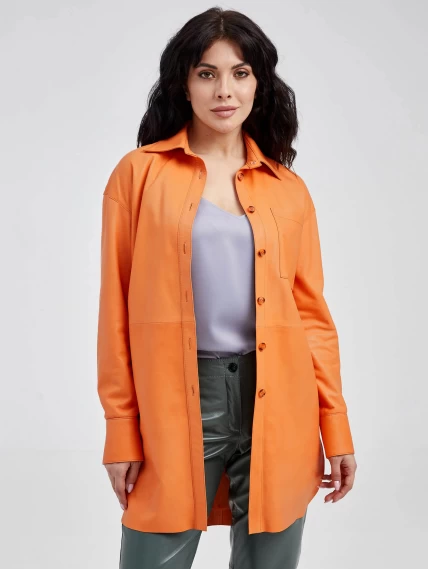 Товар женская кожаная рубашка с поясом из натуральной кожи 01_3, оранжевая, размер 46, артикул 90520 выполнен из натуральной кожи с застежкой пуговицы. Рассчитан на сезон: весна-лето. Длина изделия 94 см, силуэт свободный.