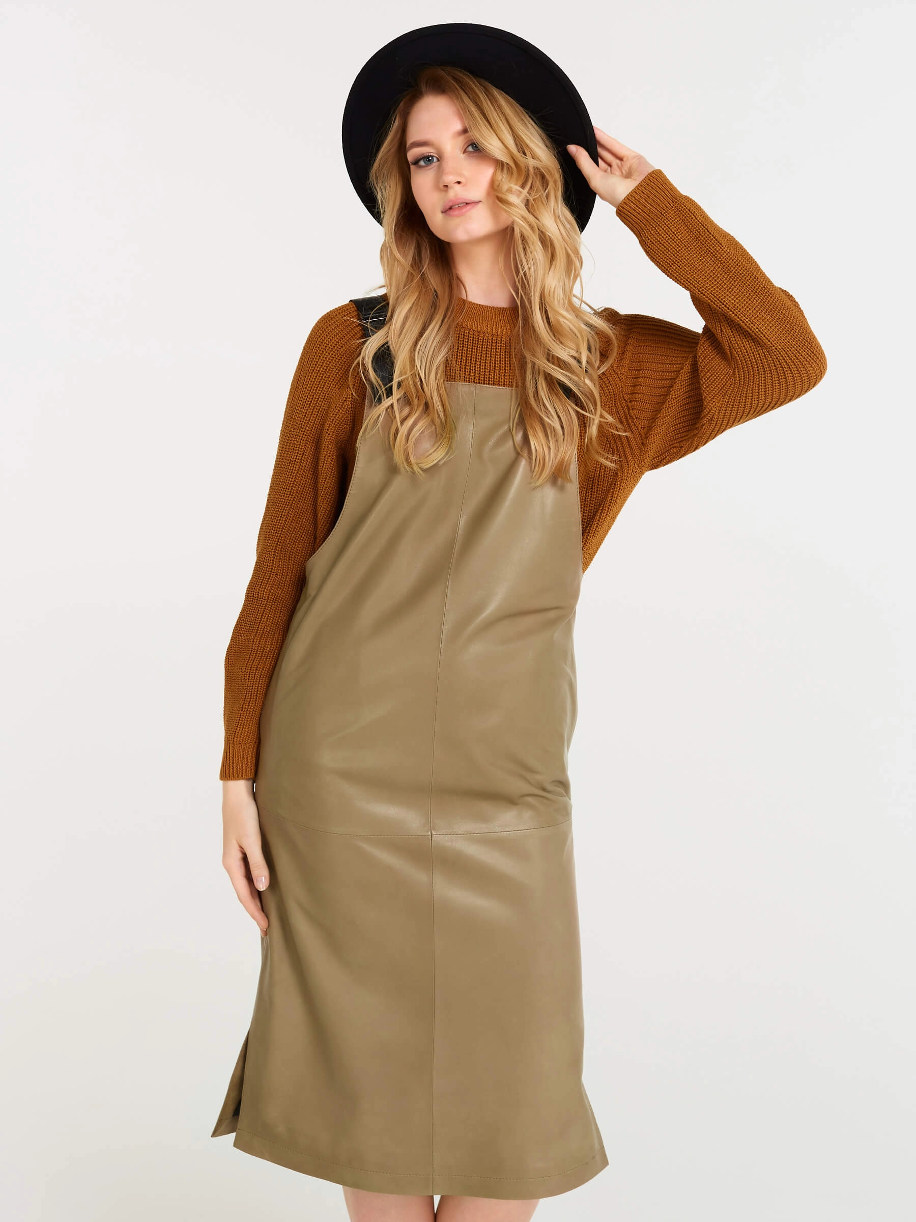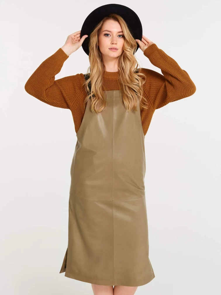Товар кожаный сарафан 01, серо-коричневый, размер 44, артикул 85160 выполнен из натуральной кожи с застежкой бретели. Рассчитан на сезон: демисезон. Длина изделия 98 см, силуэт прямой.
