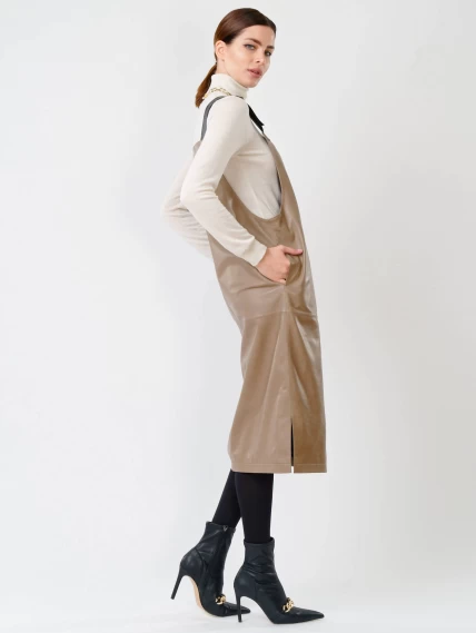 Кожаный сарафан 01, серо-коричневый, размер 44, артикул 85271