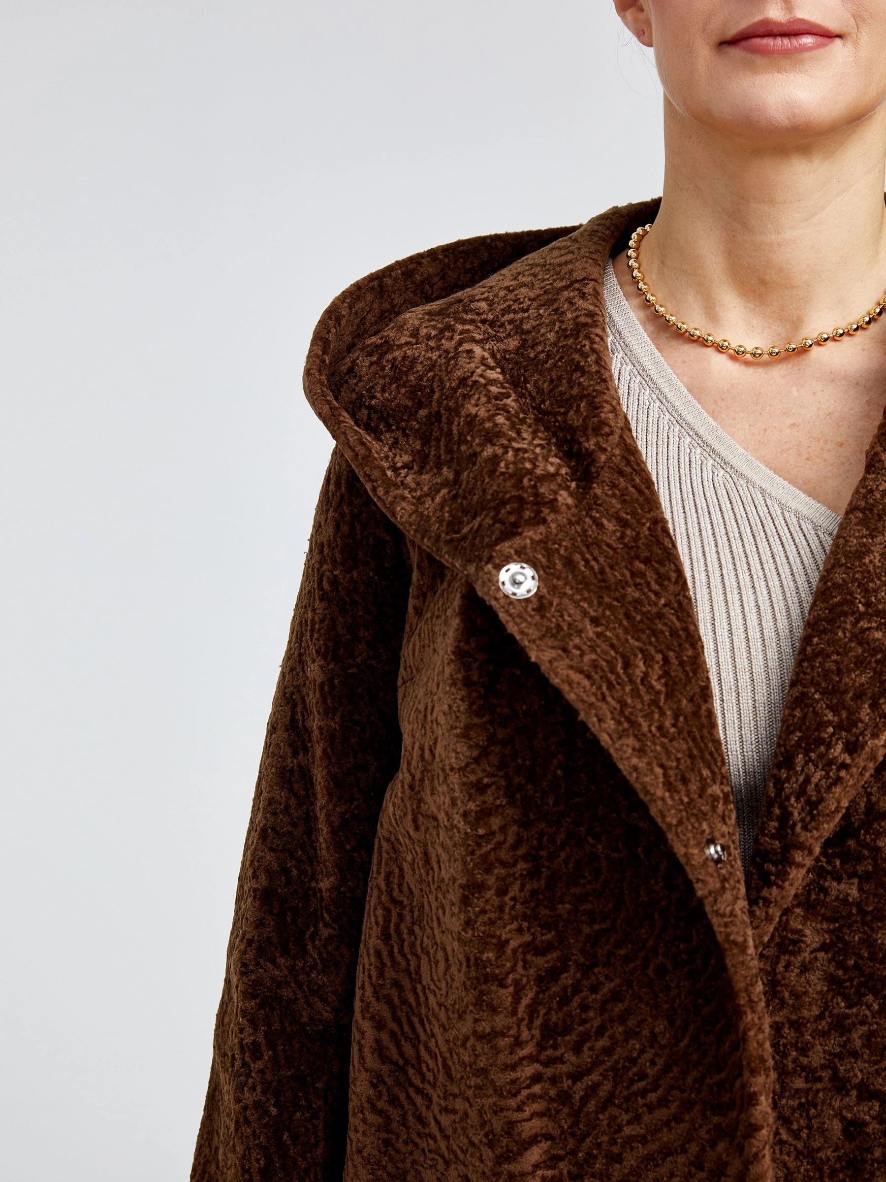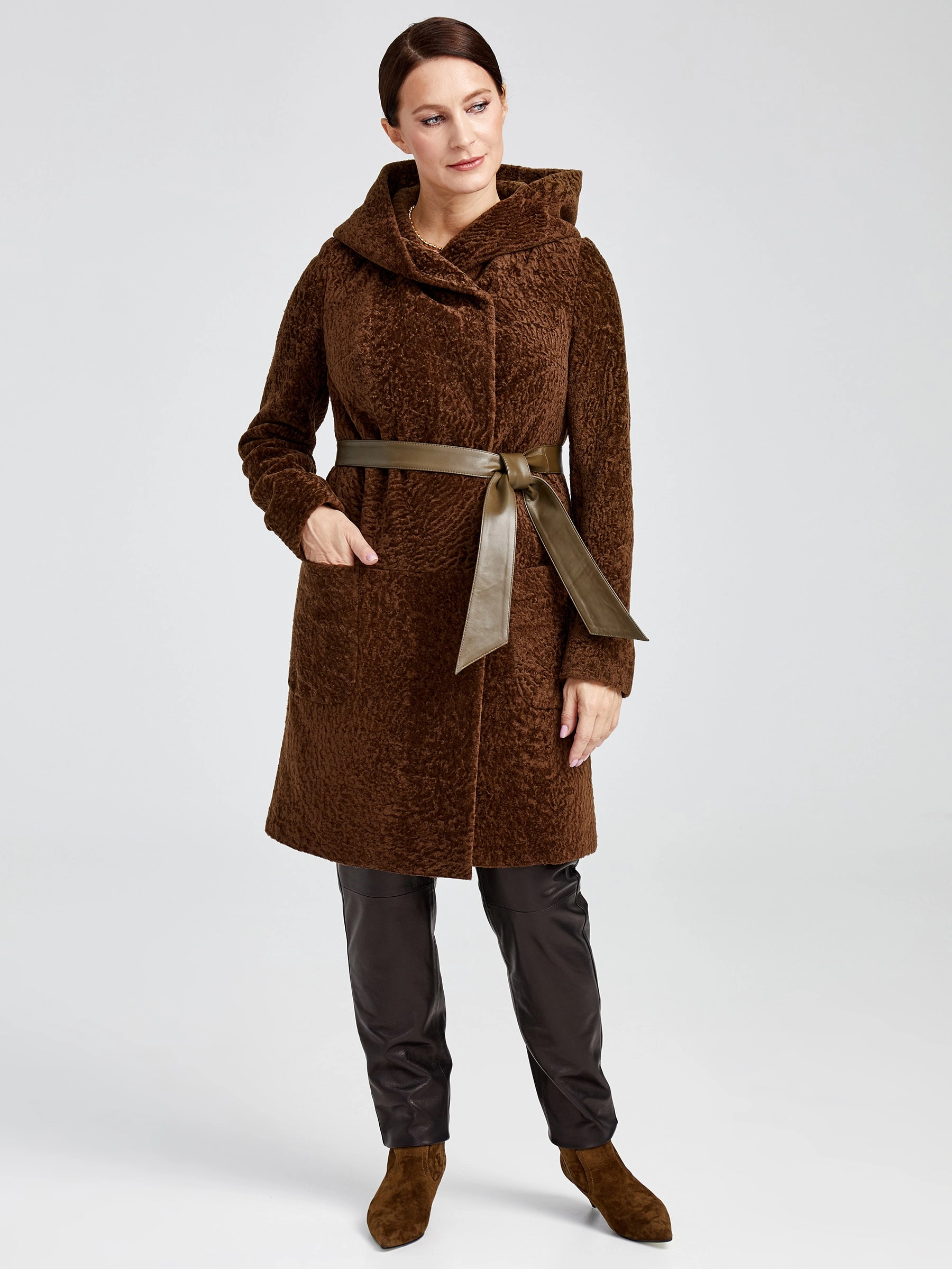 Полупальто из нежнейшего меха новозеландского ягнёнка. Удобный капюшон. Современный шерстяной утеплитель шерстепон (внешне напоминает пуховой платок). Застёжки – надёжные итальянские «кнопки». Качественная подкладка. Минимальный вес. Удобные широкие рукава. Длина рукавов регулируется отворотом манжет. Минимальный вес. Комфортная посадка по фигуре. Прекрасная свобода движений.