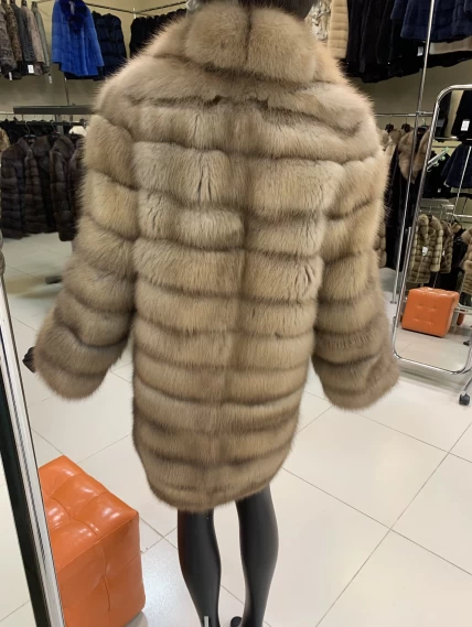 Товар поперечная шуба из куницы для женщин 2а, светло-коричневая, размер 44, артикул 33350 выполнен из куница с застежкой клипсы. Рассчитан на сезон: зима. Длина изделия 84 см, силуэт прямой.