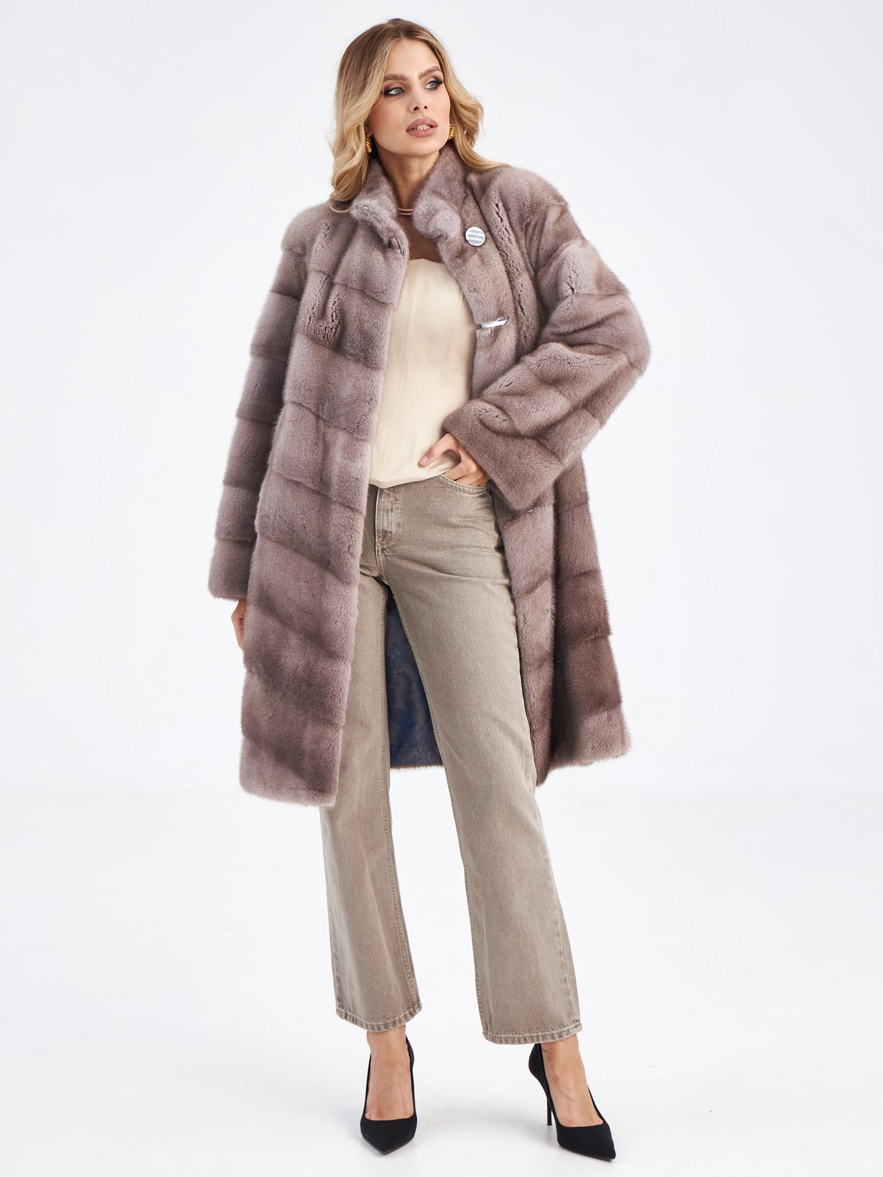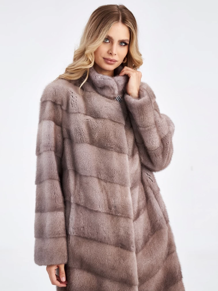 Товар поперечная шуба из меха норки для женщин 2а(с), серо-голубая, размер 48, артикул 33800 выполнен из норка с застежкой клипсы. Рассчитан на сезон: зима. Длина изделия 100 см, силуэт прямой.