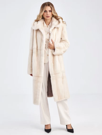 Длинная норковая шуба с капюшоном для женщин премиум класса Марина(к), жемчужная, размер 56, артикул 33750