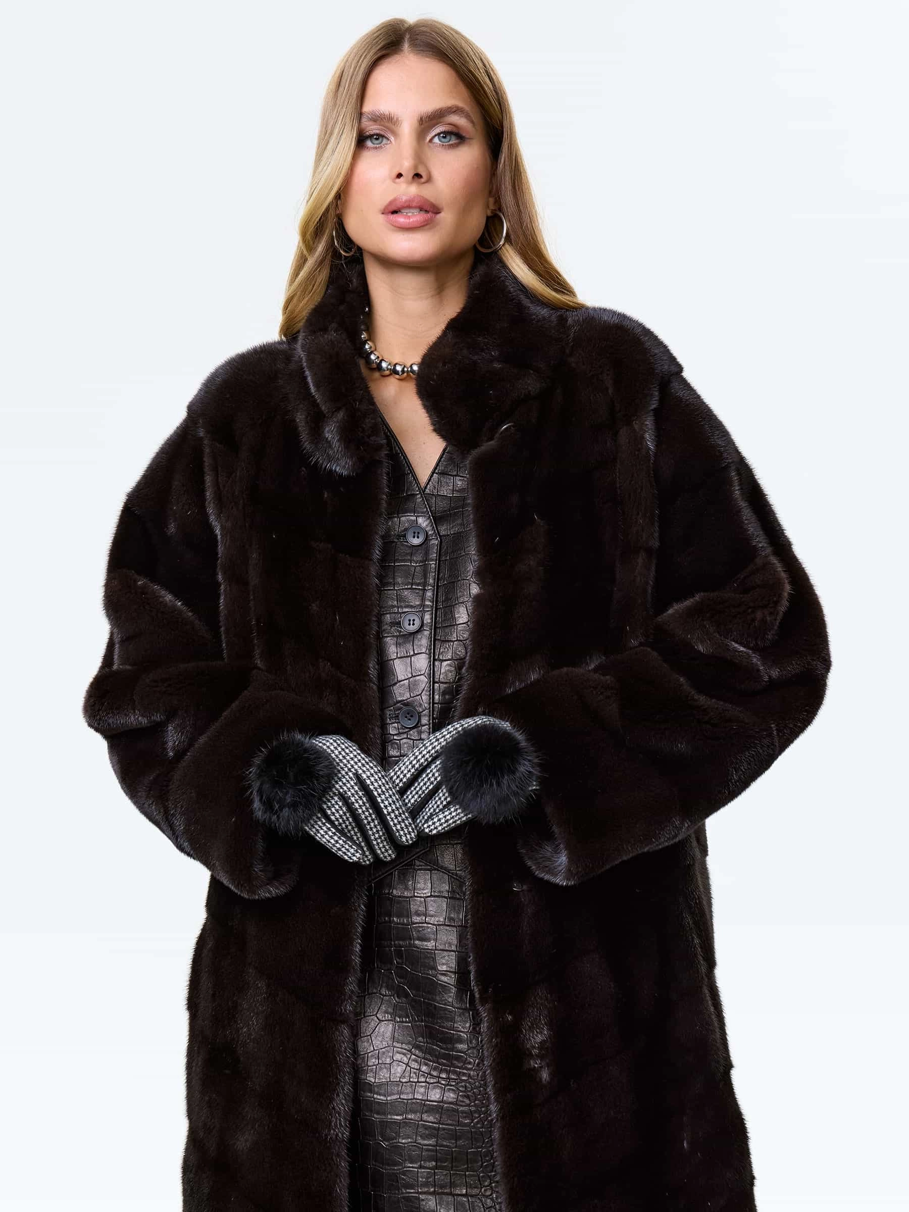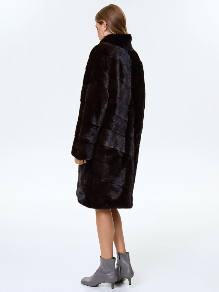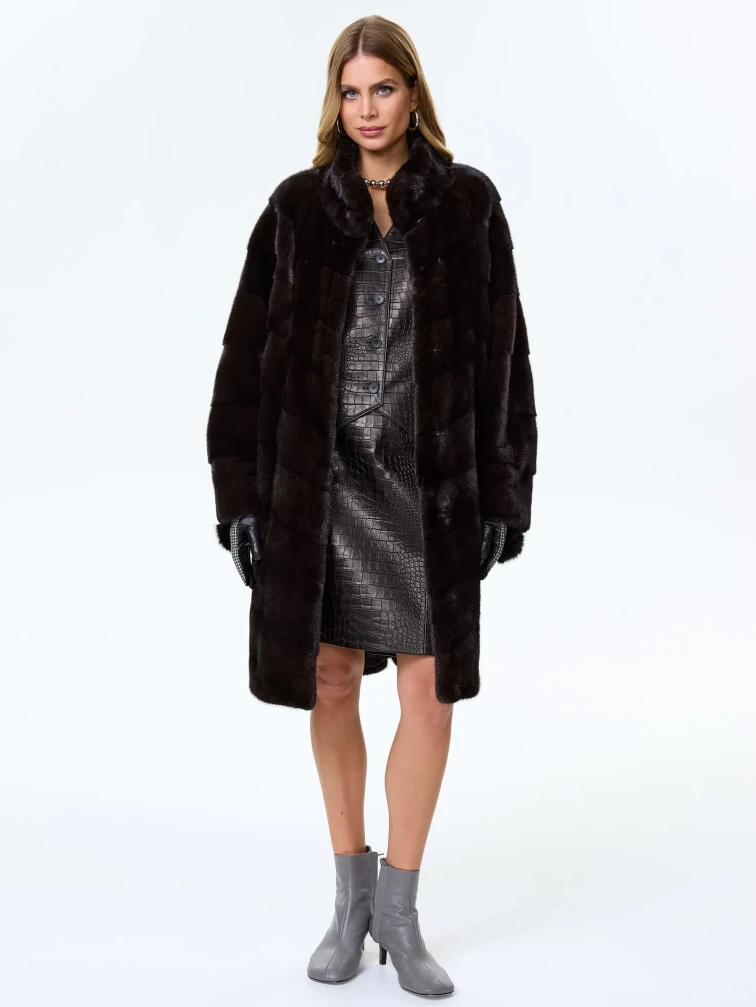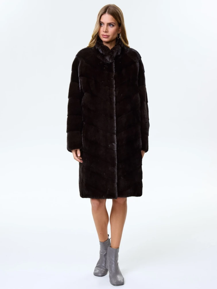 Товар норковая женская шуба с воротником стойка софия(в), коричневая, размер 50, артикул 34060 выполнен из норка с застежкой клипсы. Рассчитан на сезон: зима. Длина изделия 97 см, силуэт прямой.
