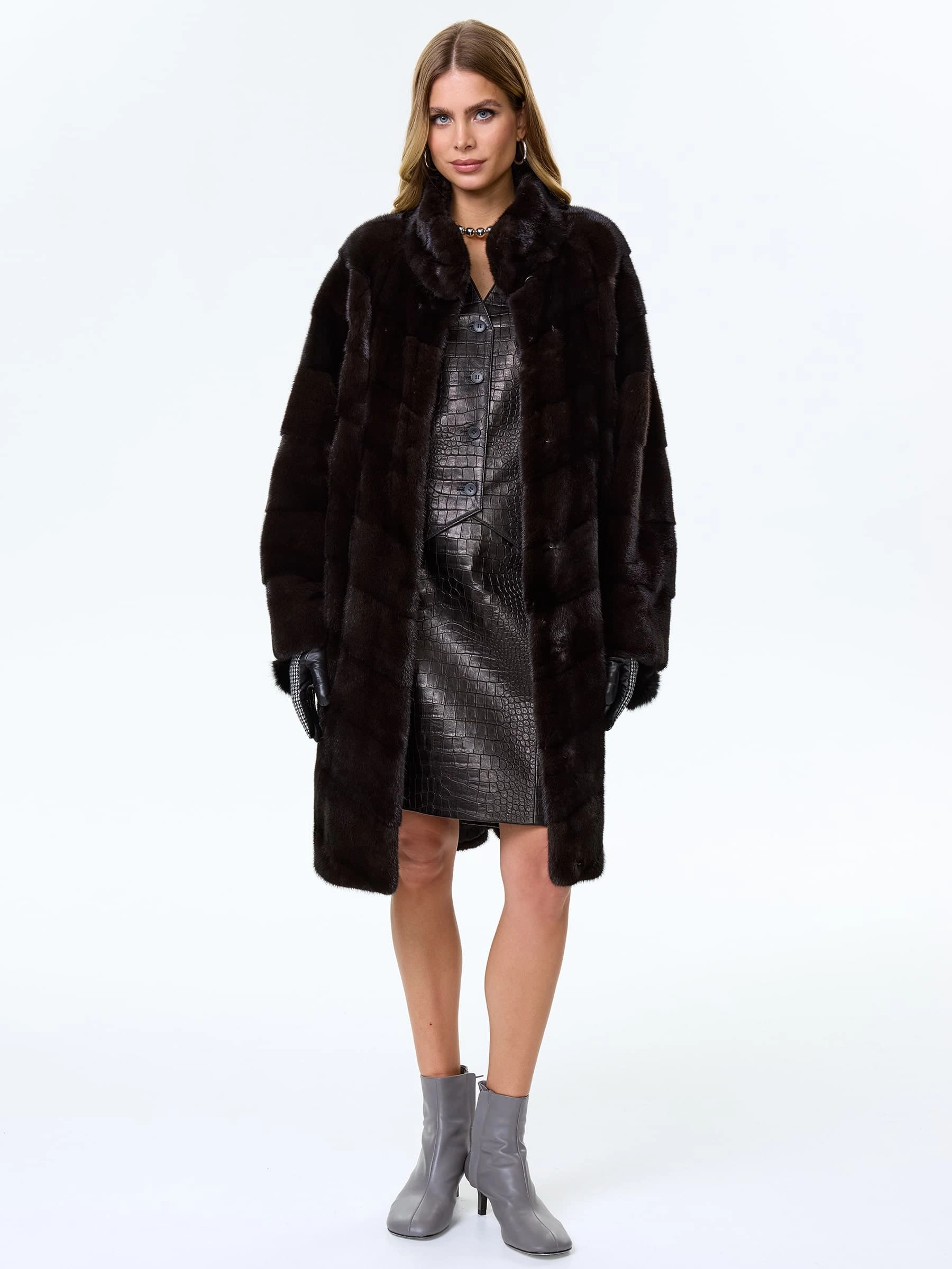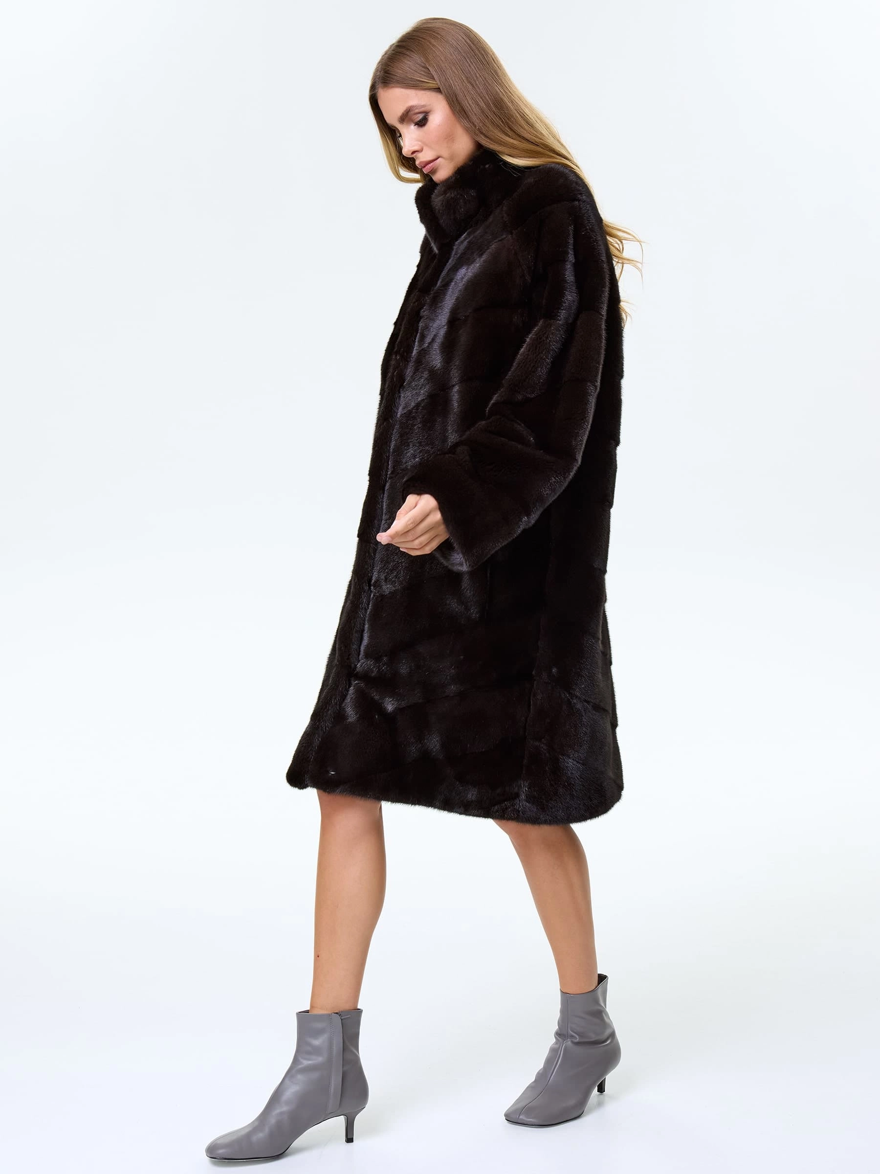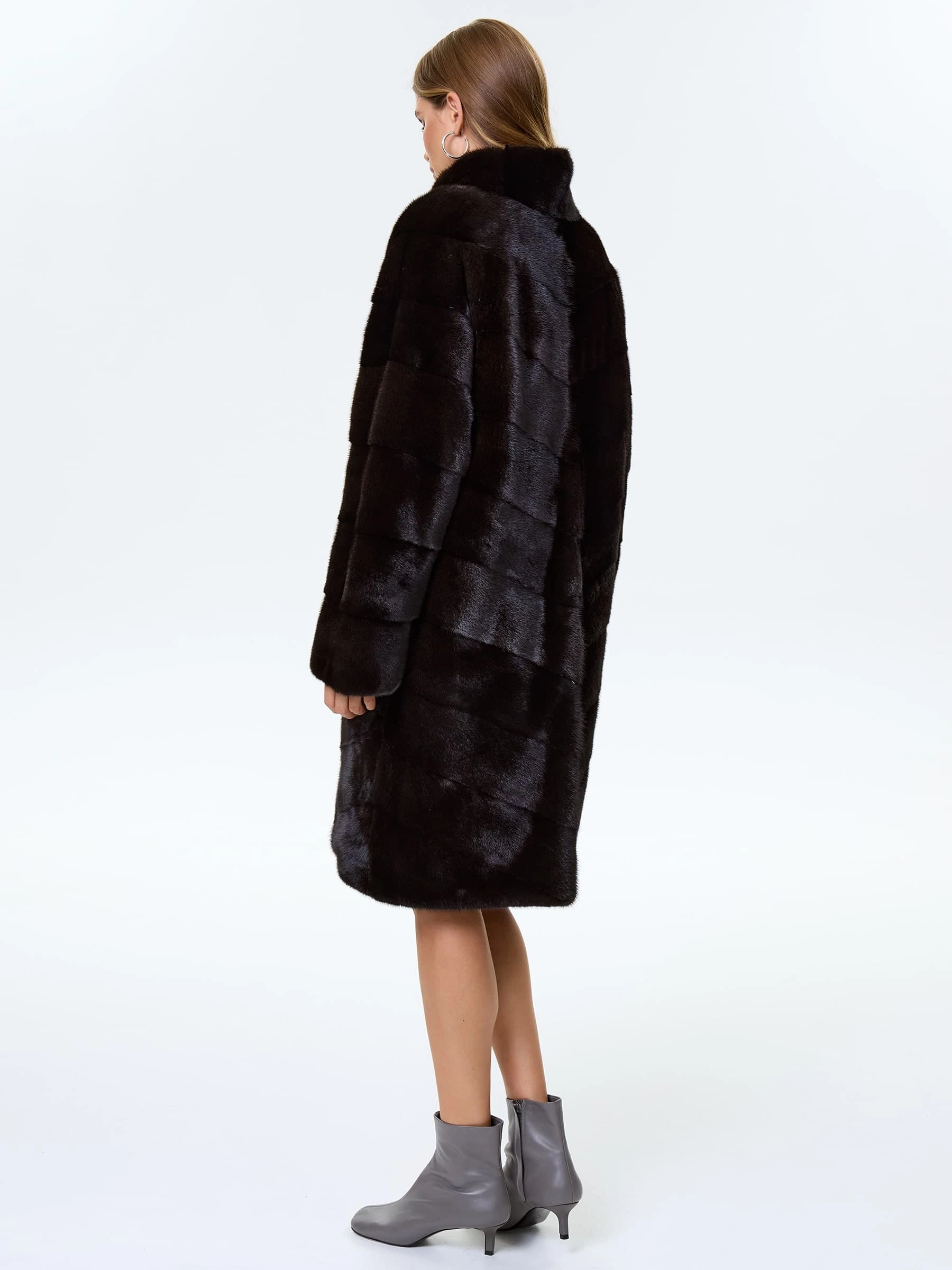 Норковая женская шуба с воротником стойка София(в), коричневая, размер 50, артикул 34060