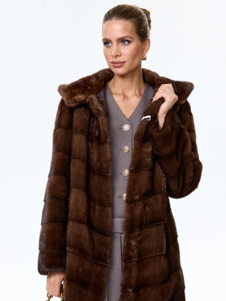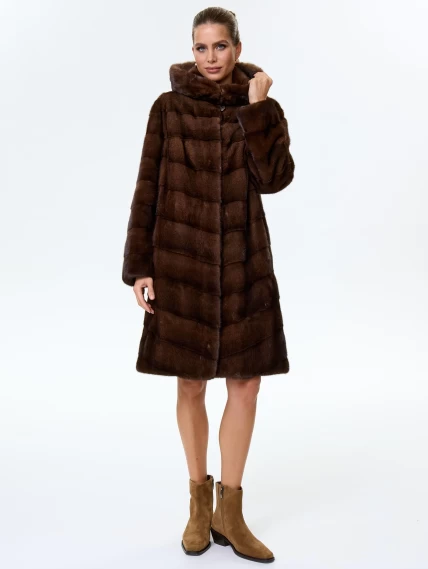 Норковая женская шуба с капюшоном Галя(к), коричневая, размер 50, артикул 34070
