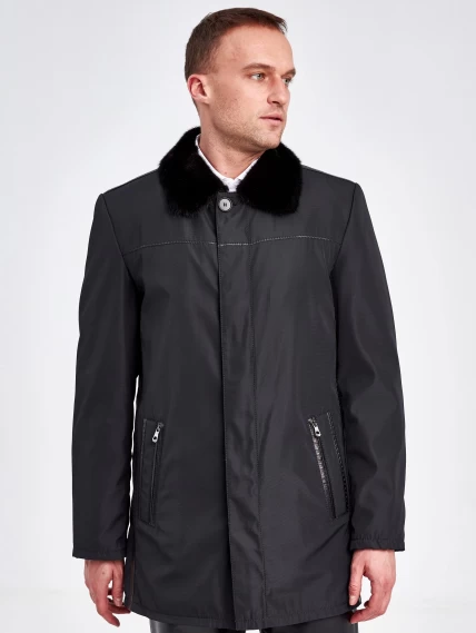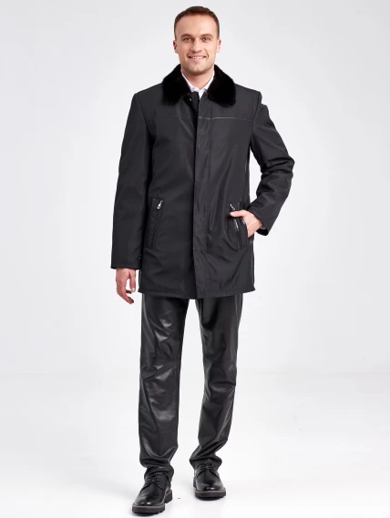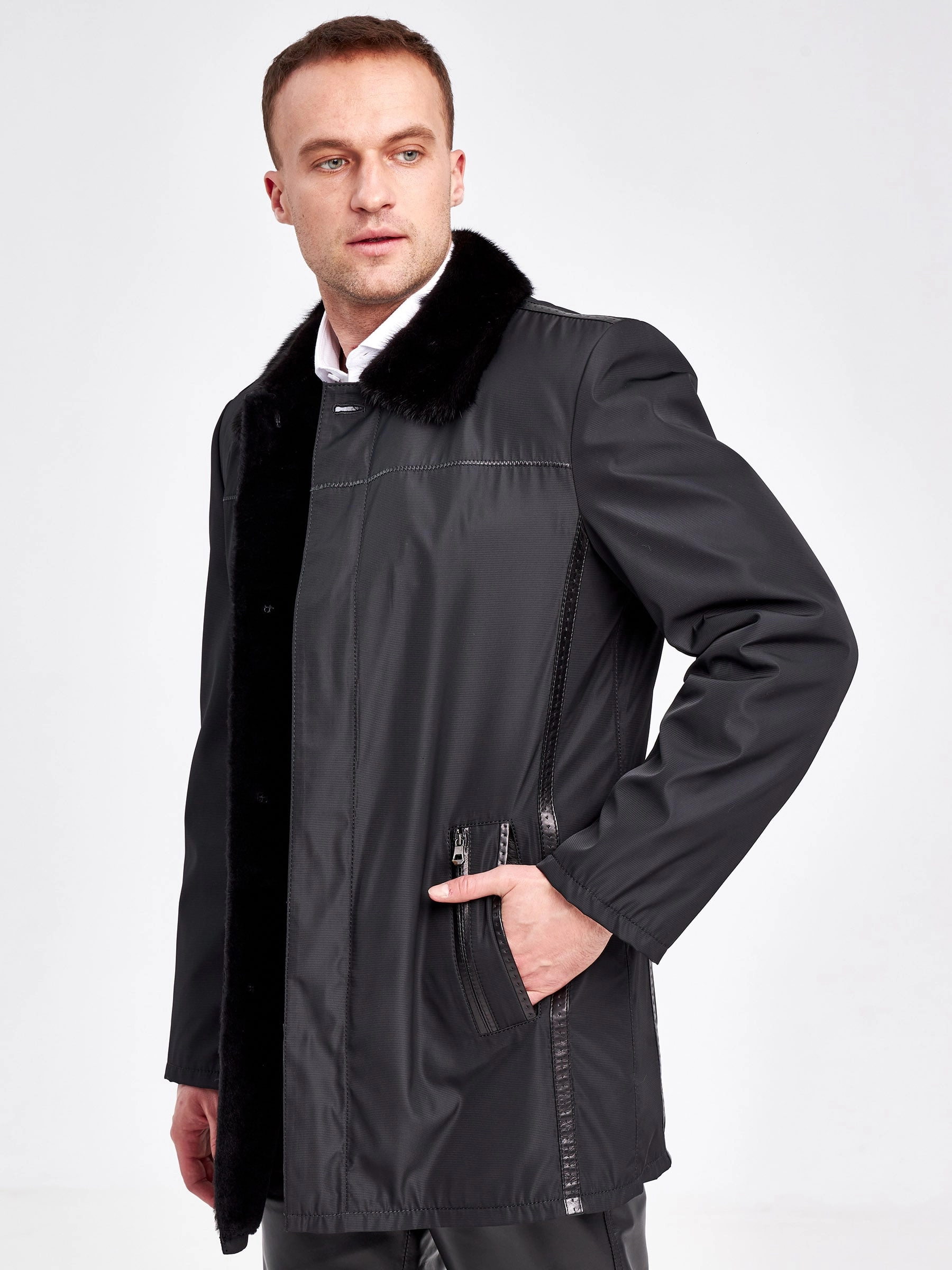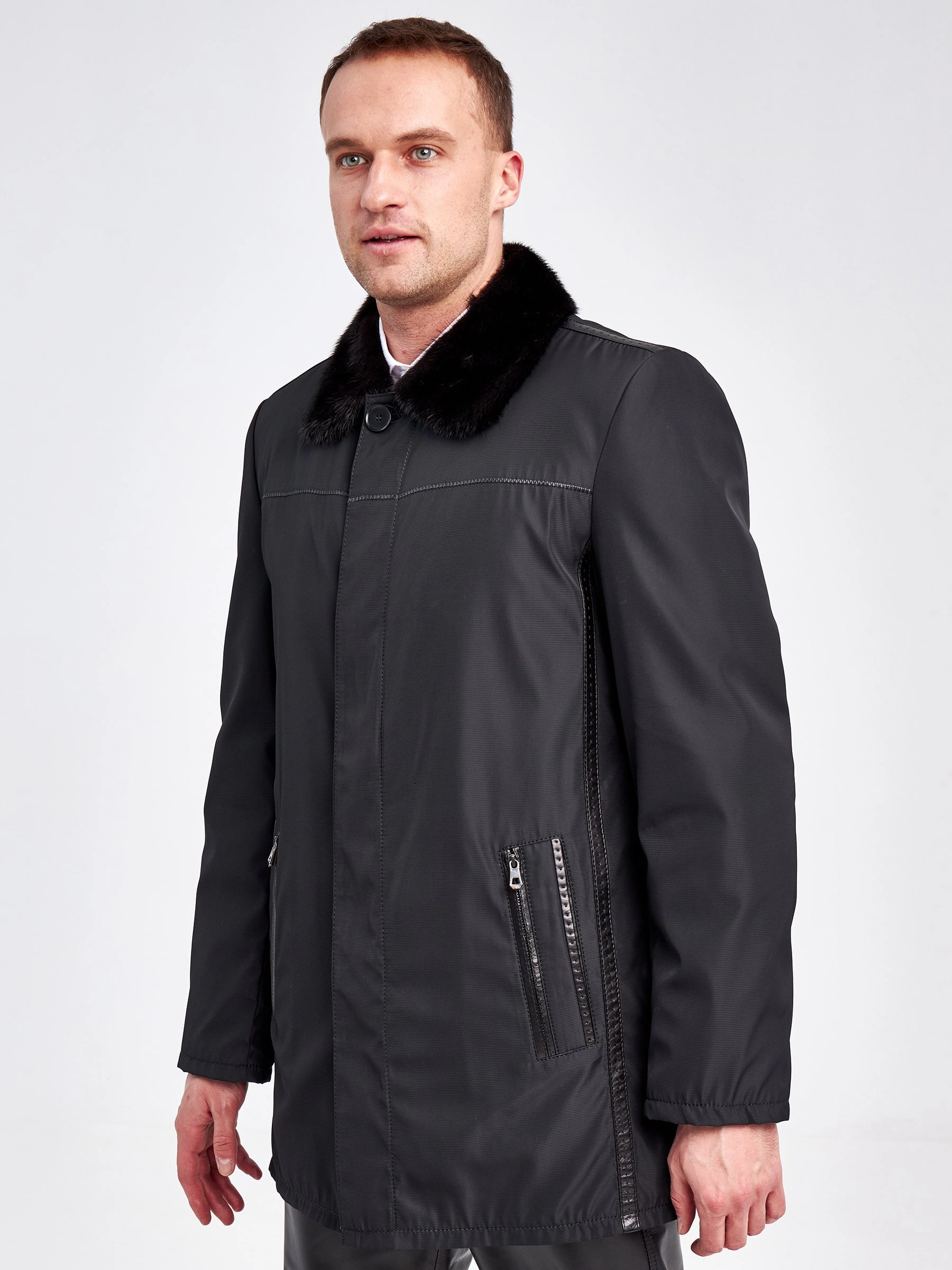 Текстильная зимняя мужская куртка с воротником меха норки 5796, черная, размер 46, артикул 40880