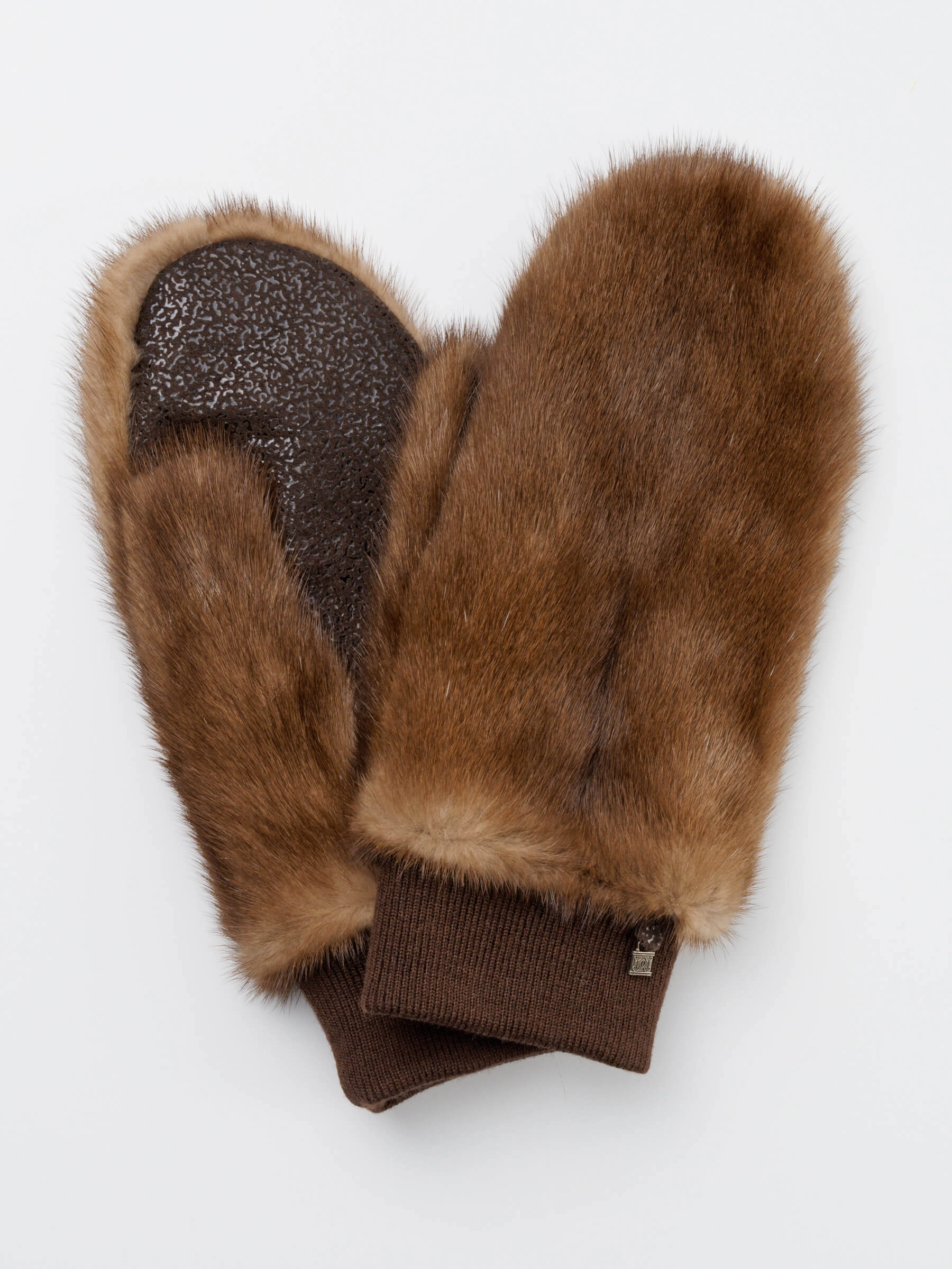Варежки из меха норки женские 225, коричневые, размер One Size, артикул 20400