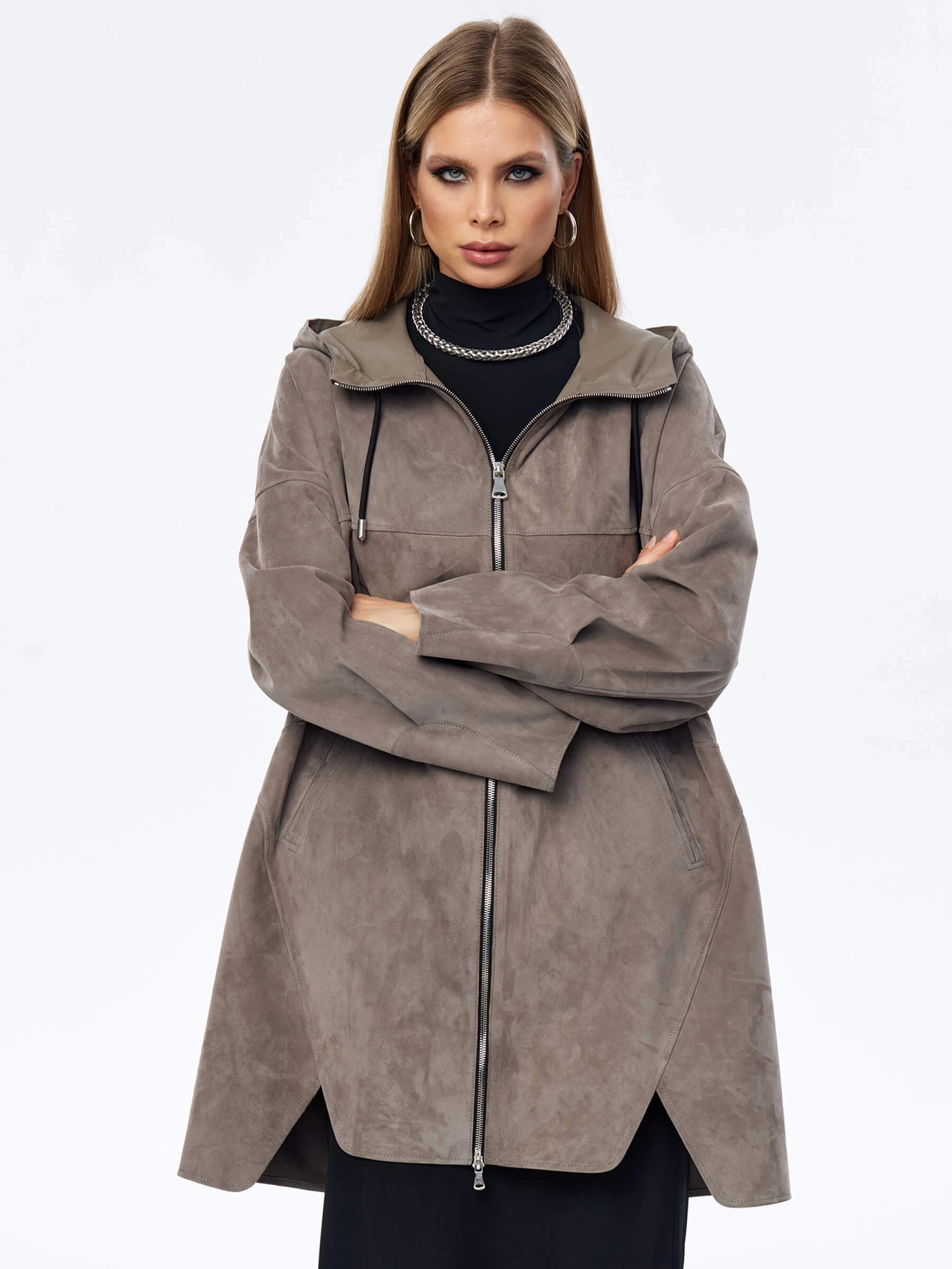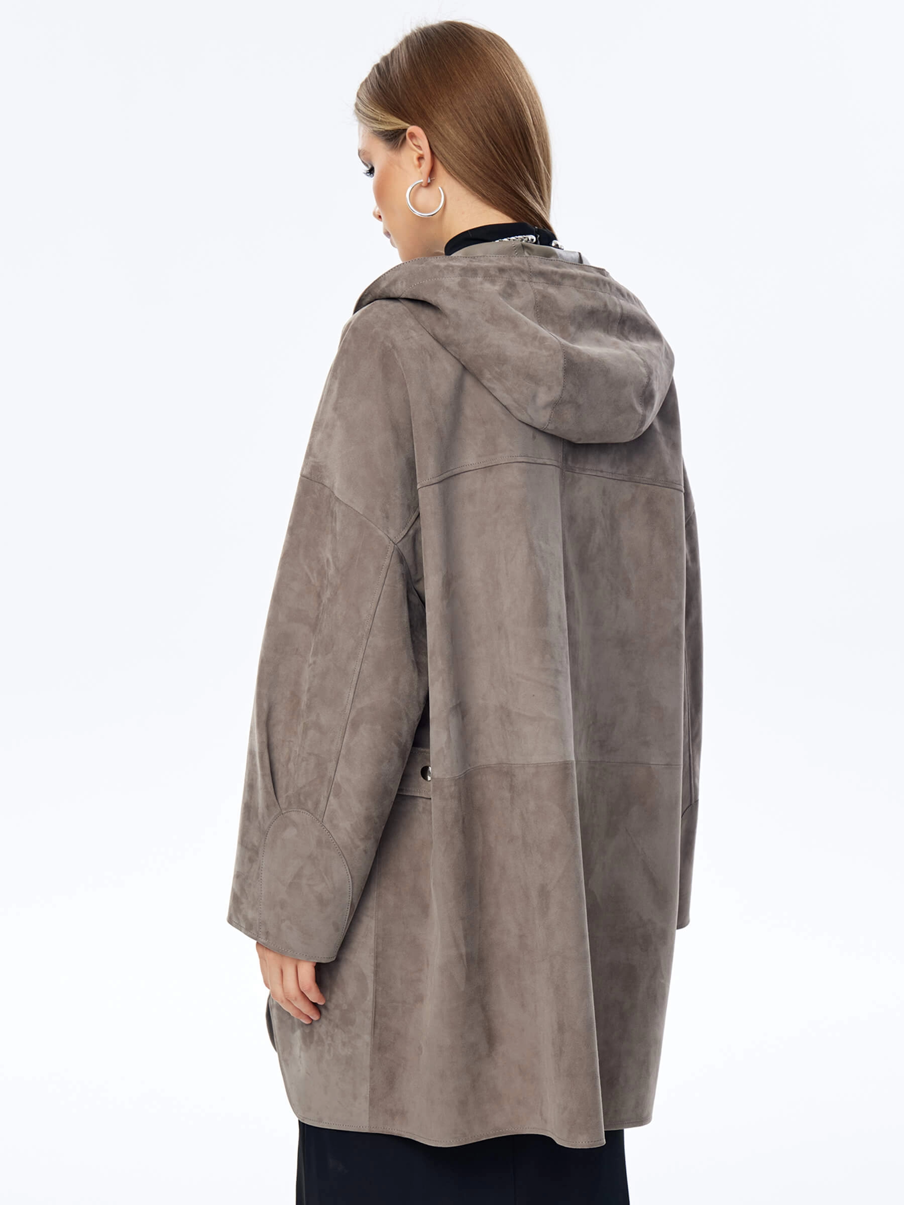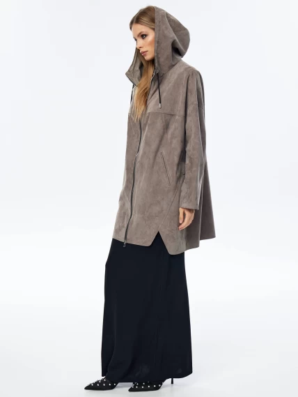 Замшевый плащ оверсайз с капюшоном для женщин премиум класса 3059з, серый, размер 52, артикул 23570