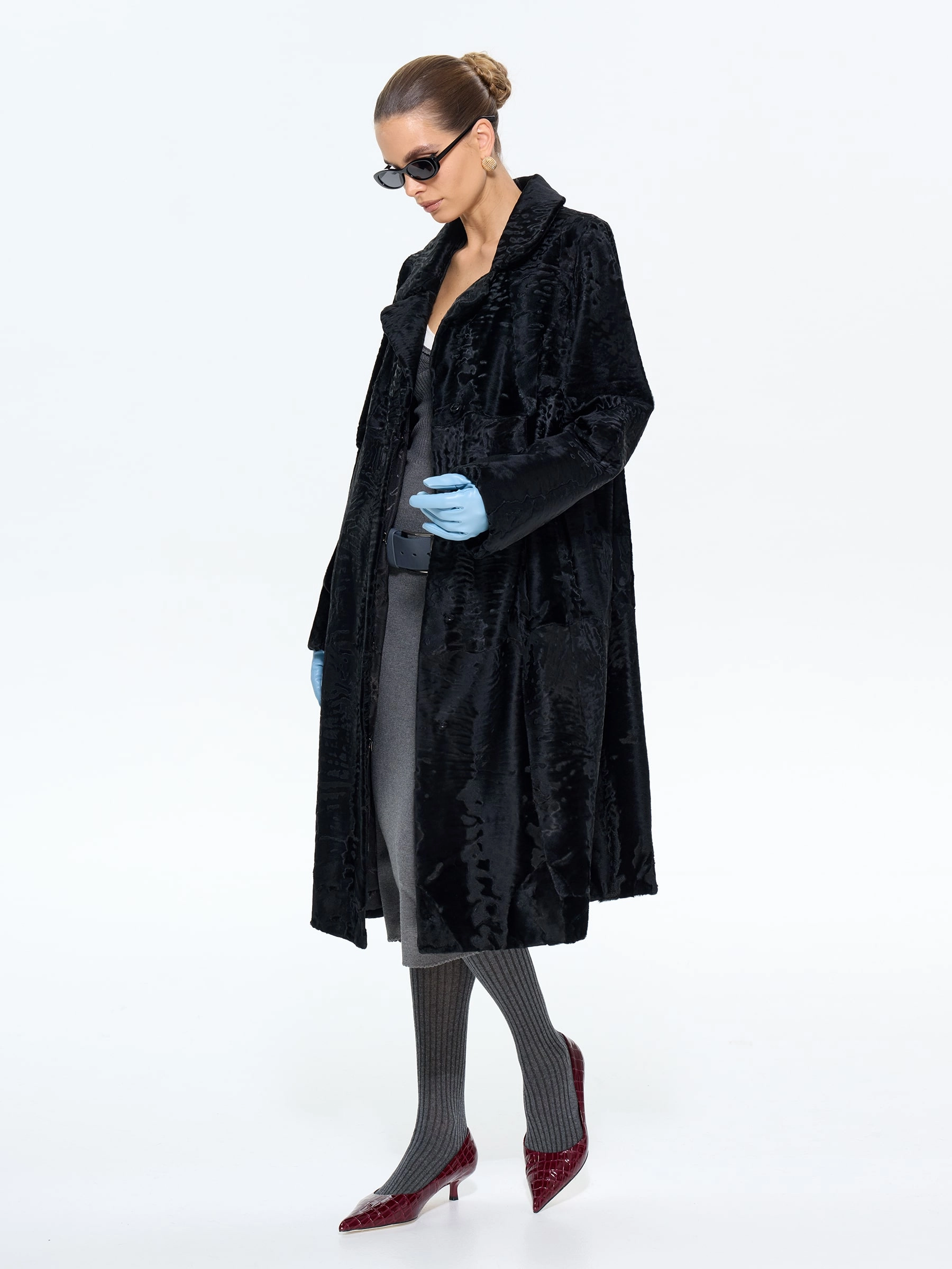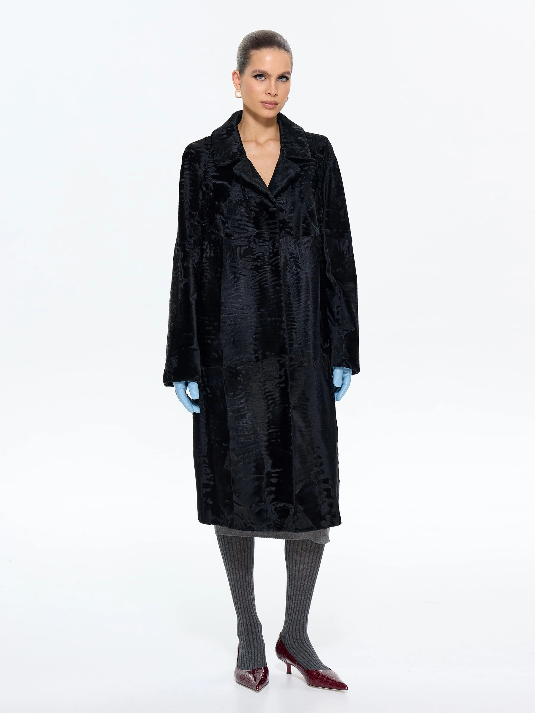 Женская длинная шуба из меха каракульчи Лола, черная, размер 54, артикул 65610