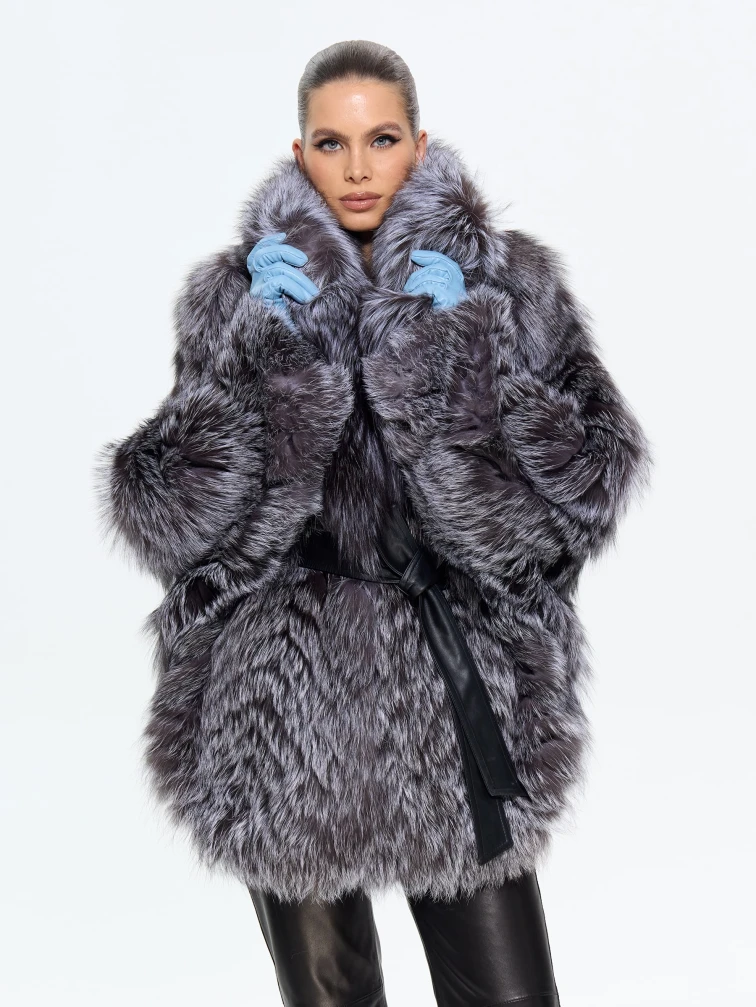 Короткая шуба из чернобурки с воротником английского кроя — это вызов условностям. Свободный силуэт с поясом и рукавом кимоно создает идеальный баланс роскоши и легкости. Сочетайте ее с высокими сапогами и объемным свитером, чтобы выглядеть стильно, дерзко и небрежно-элегантно.